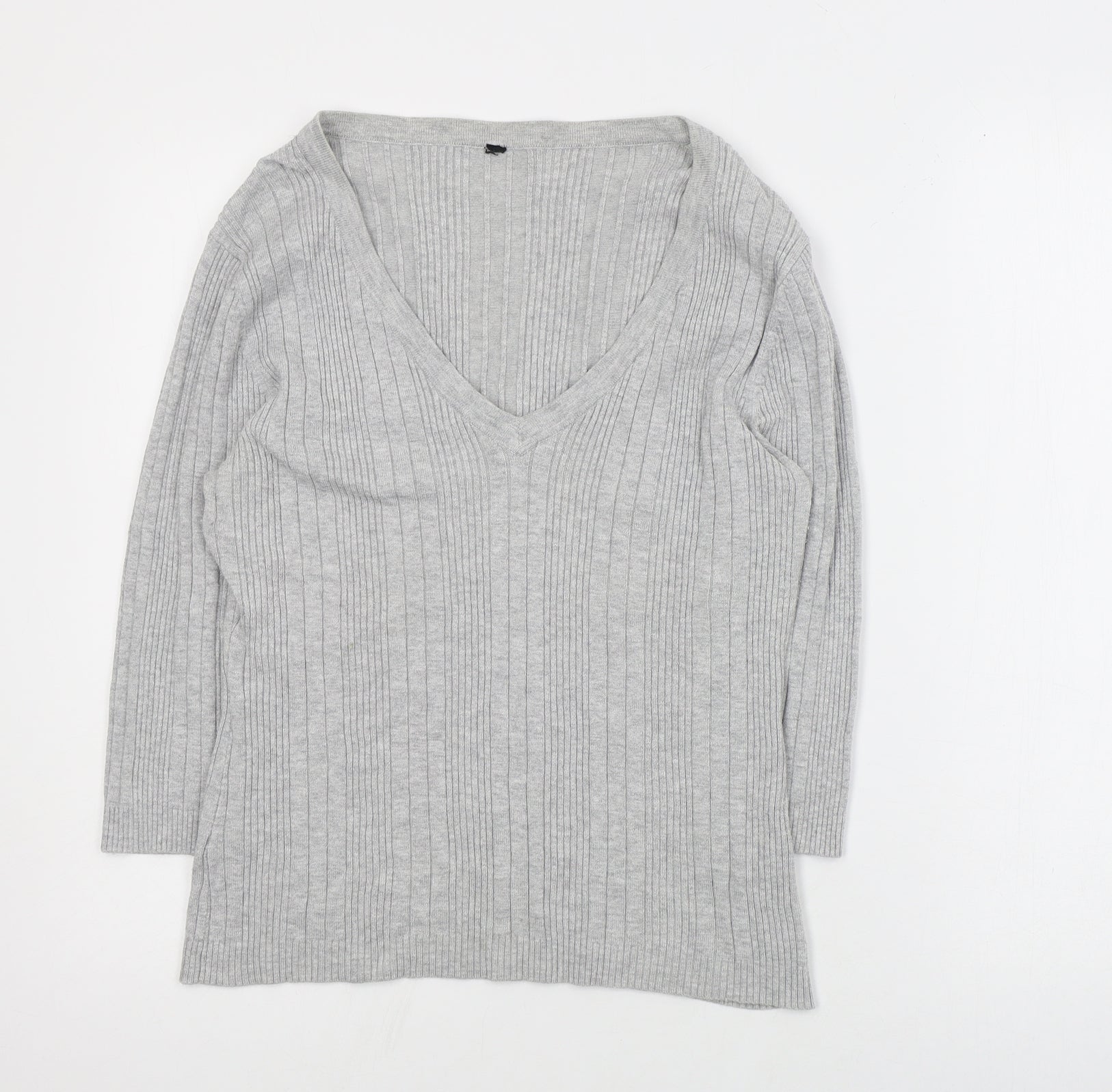 Bay Womens Grey V-Neck Viscose Pullover Jumper Size 16