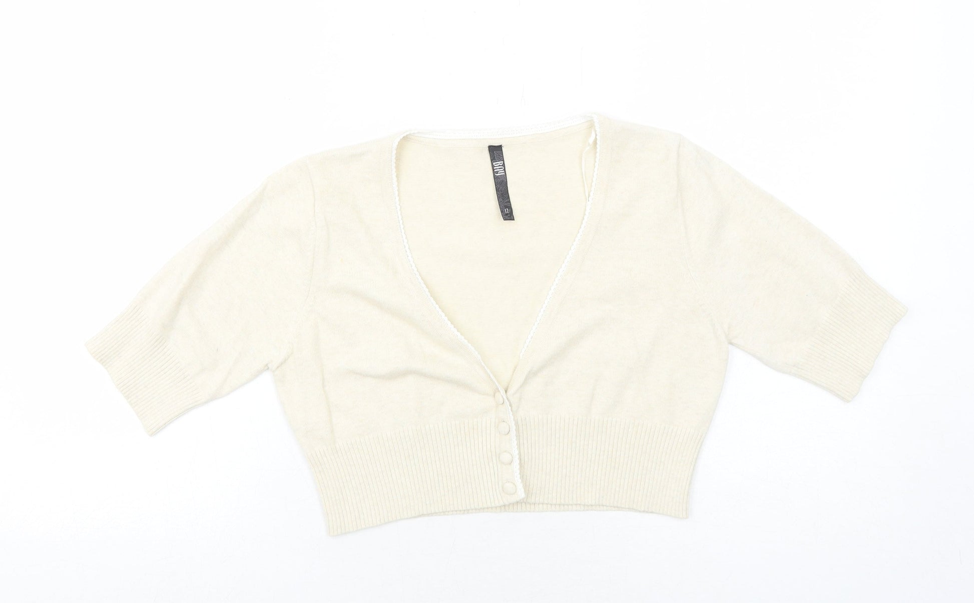 Bay Womens Ivory V-Neck Cotton Cardigan Jumper Size 12