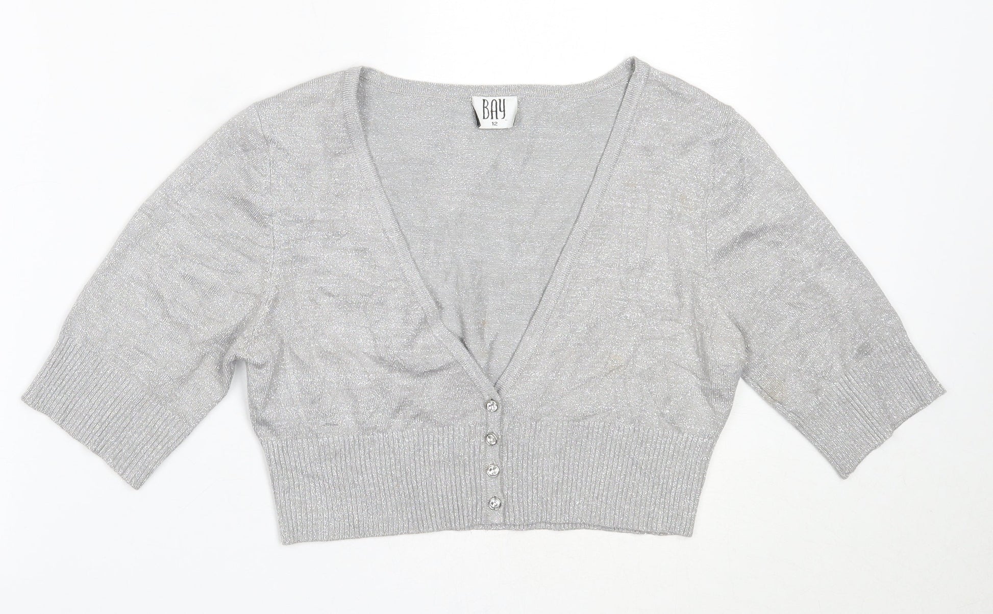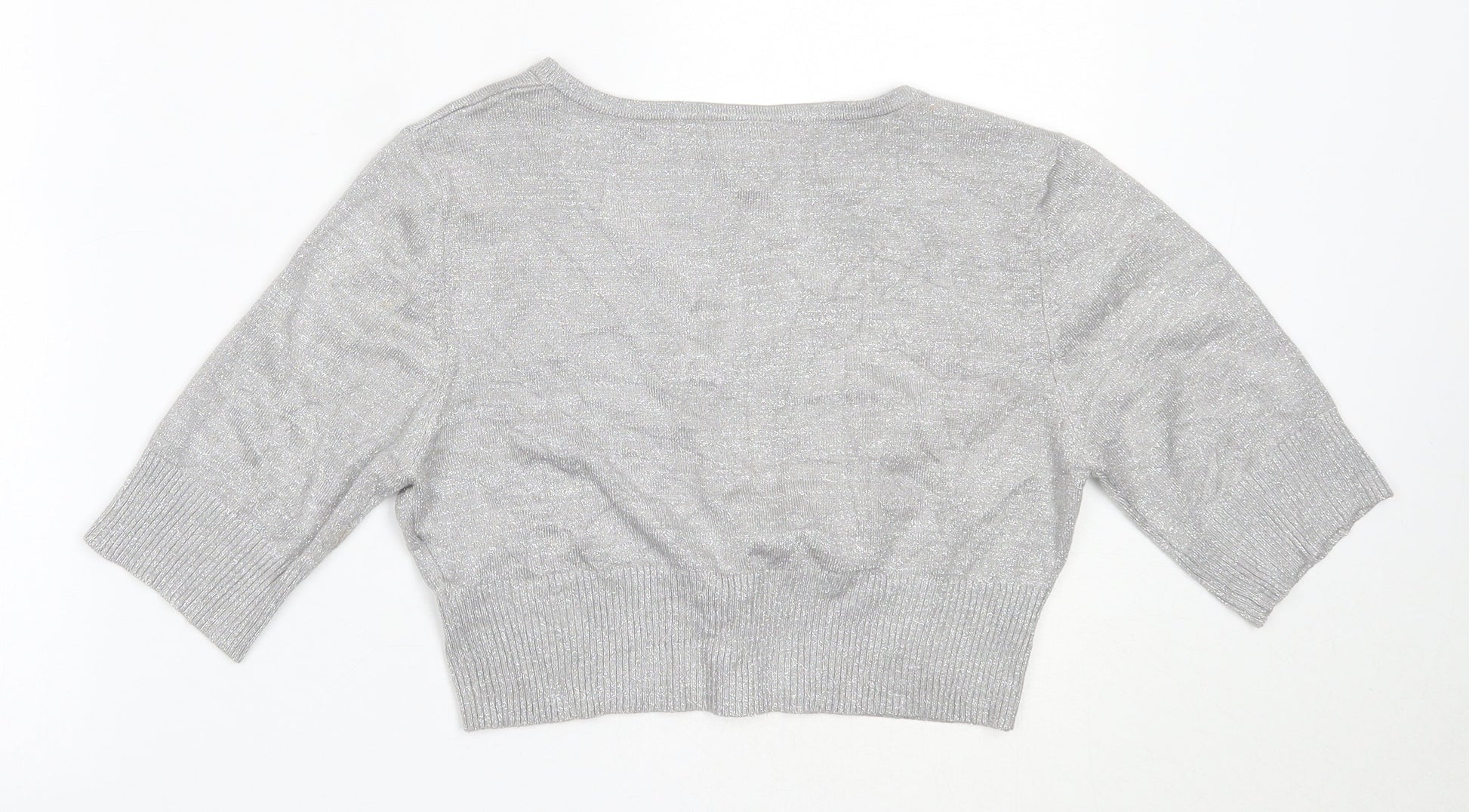 Bay Womens Silver V-Neck Viscose Cardigan Jumper Size 12