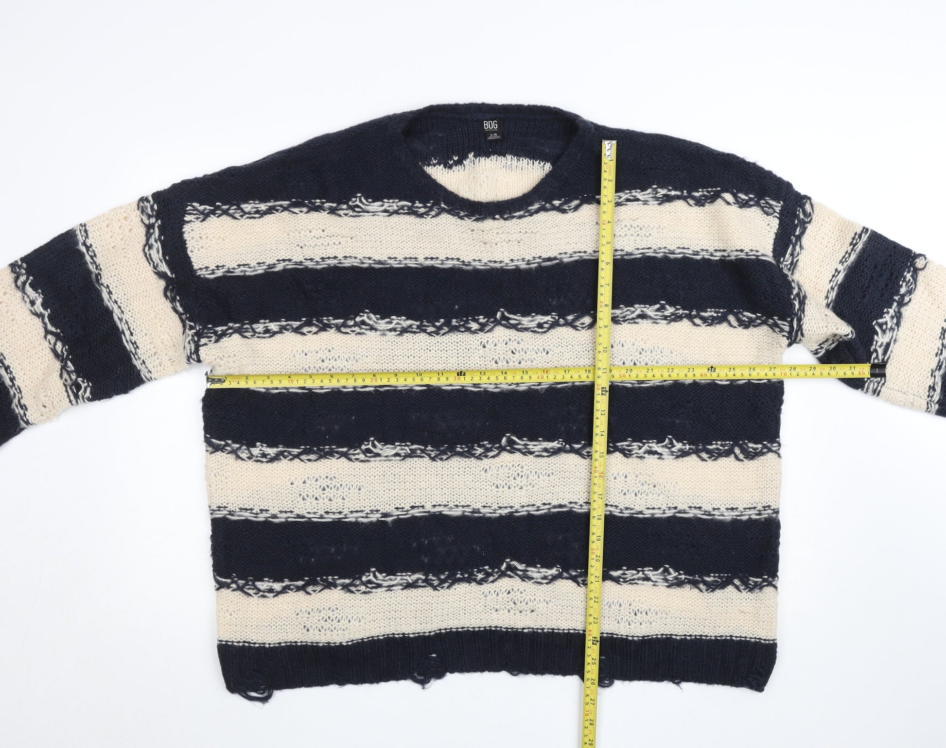 BDG Men Blue Cream Striped Open-Knit Pullover Jumper L