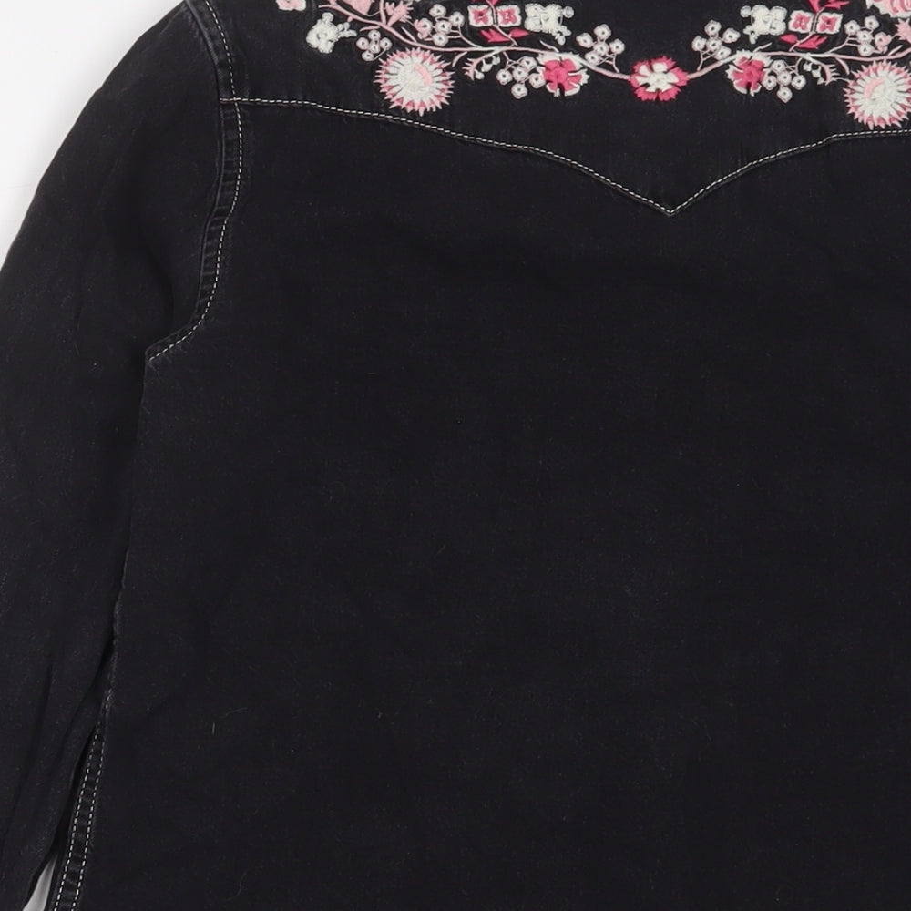 BDG Womens Black Floral Cotton Basic Button-Up Size XS Collared - Embroidered