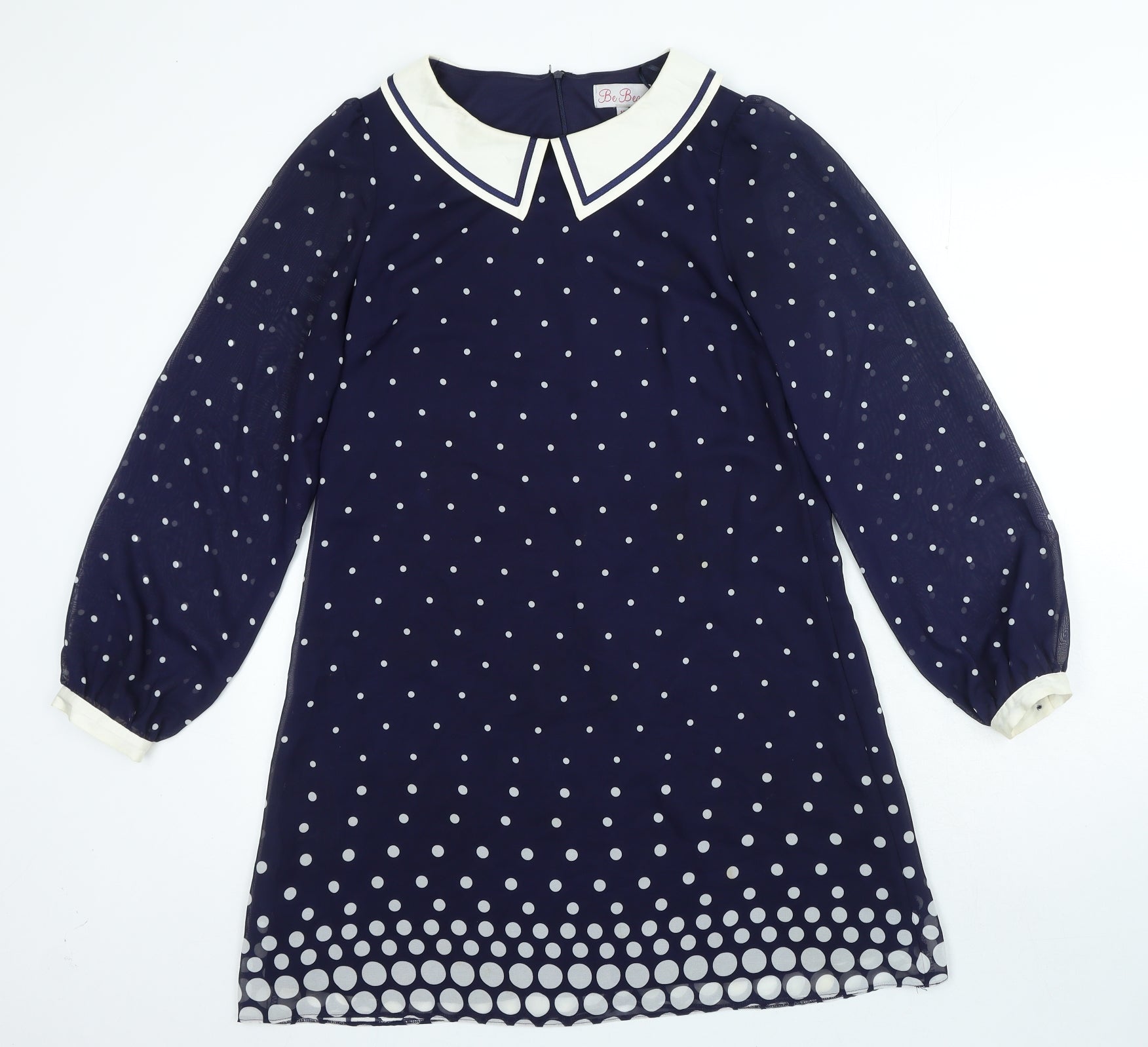 Be Beau Womens Blue Polka Dot Polyester A-Line Size 12 Collared Zip