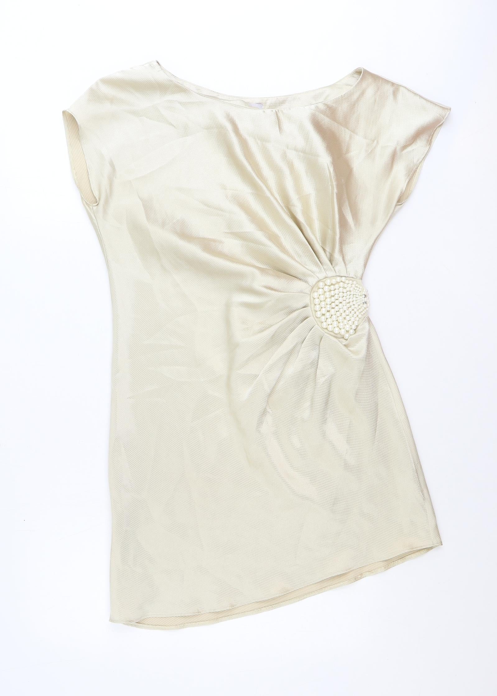 Be Beau Womens Ivory Polyester Mini Size 12 Round Neck Pullover