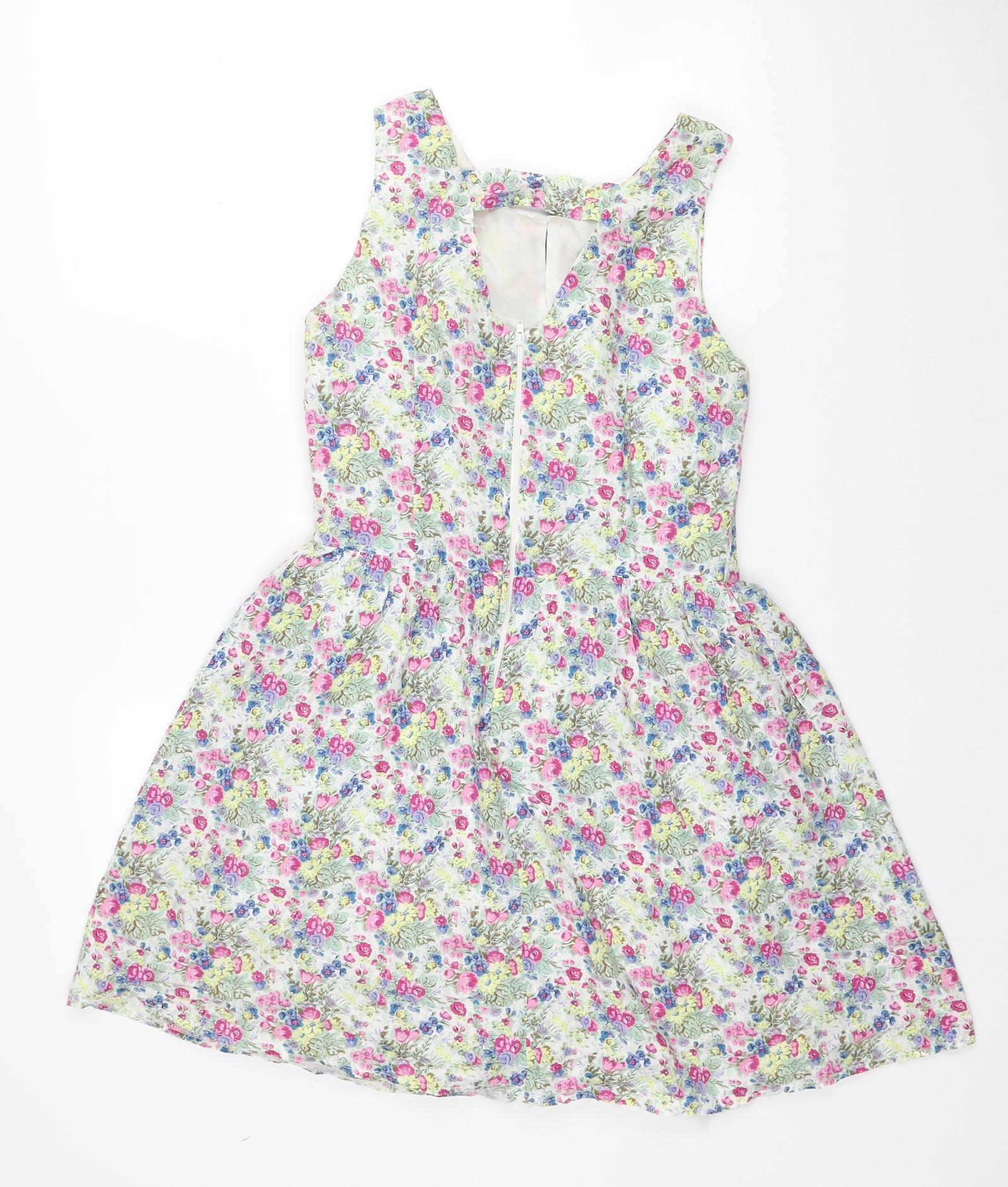 Be Beau Womens Multicoloured Floral Cotton Fit & Flare Size 10 Boat Neck Zip