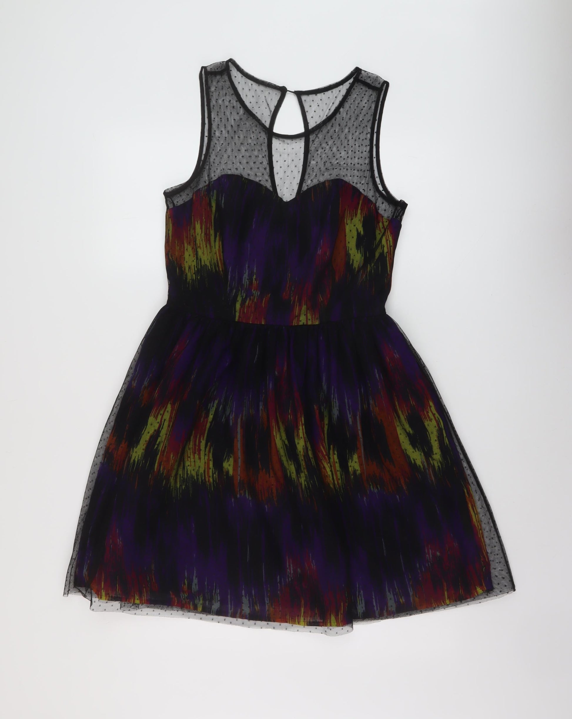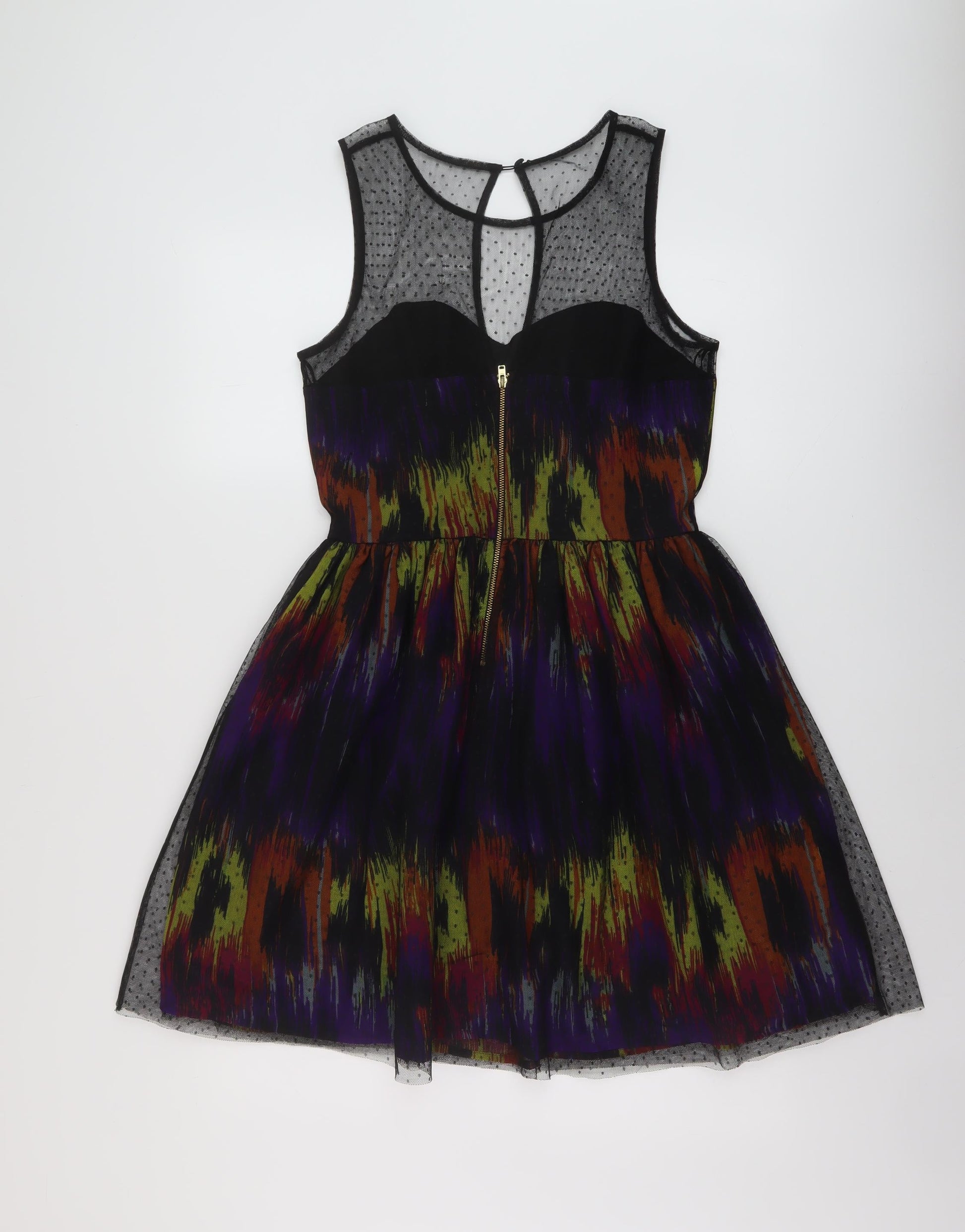 Be Beau Womens Multicoloured Geometric Polyester A-Line Size 12 Round Neck Zip