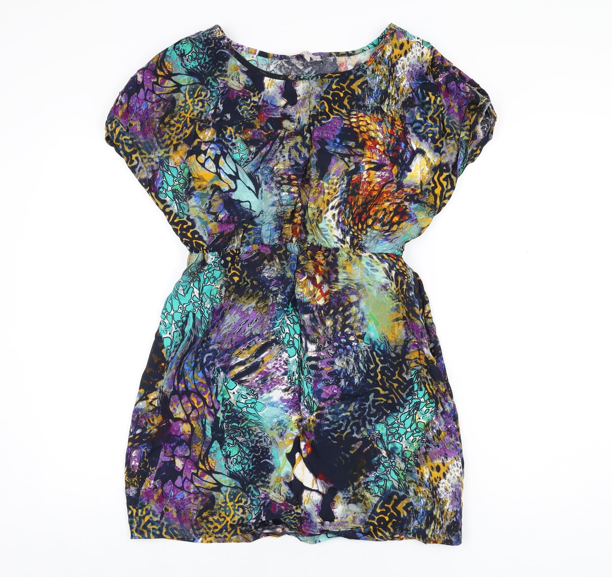 Be Beau Womens Multicoloured Geometric Viscose Mini Size 12 Round Neck Pullover
