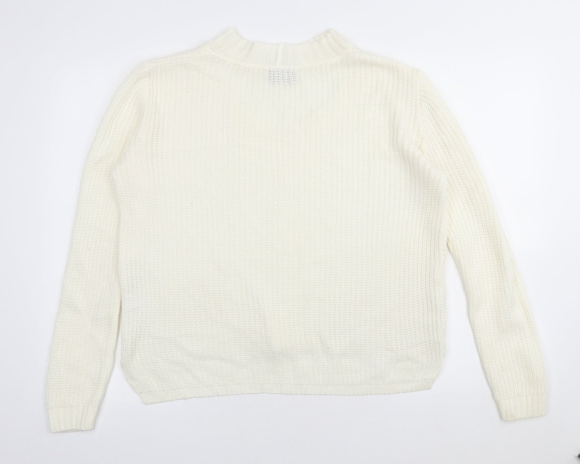 Be You Womens Ivory V-Neck Acrylic Pullover Jumper Size 8