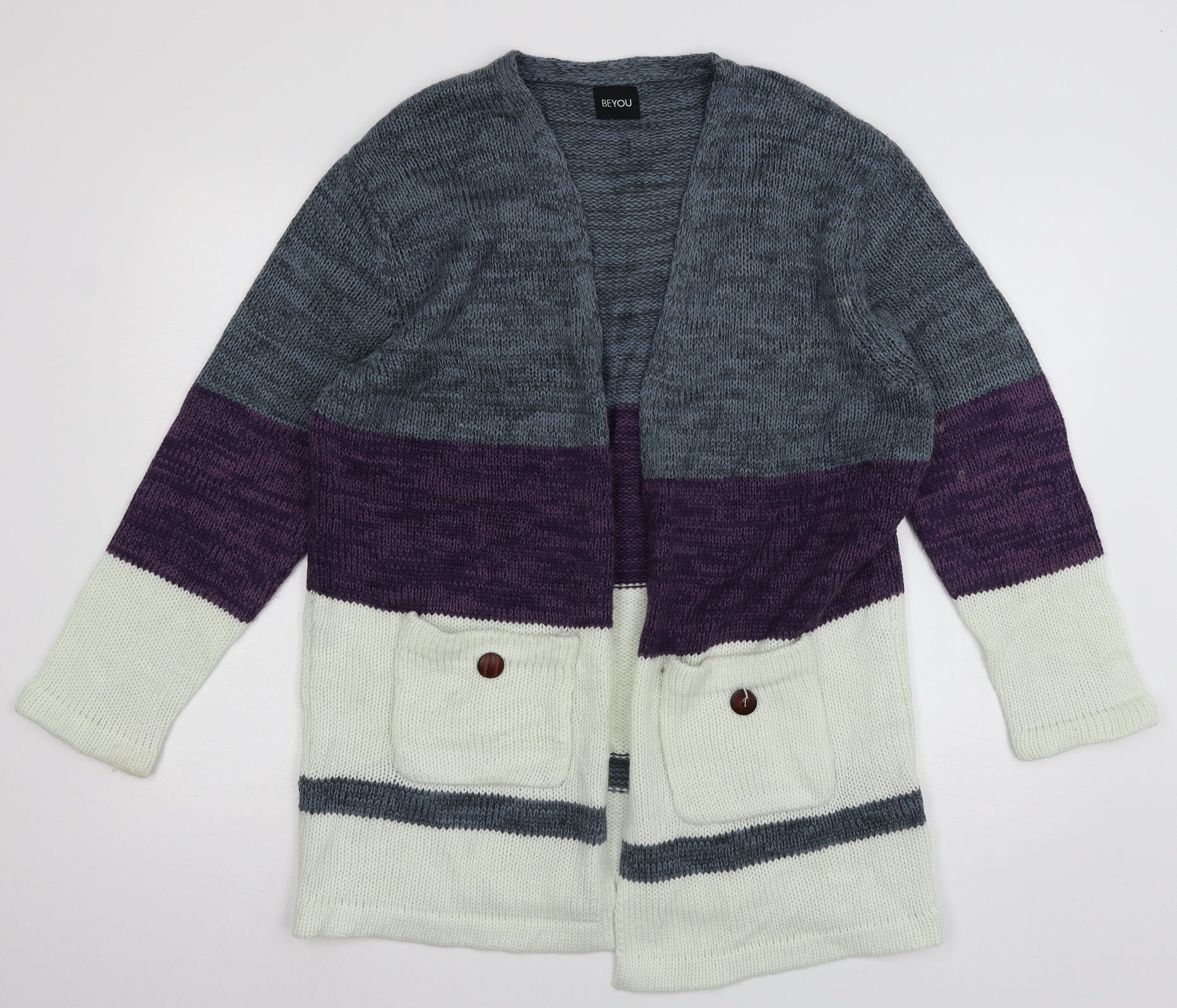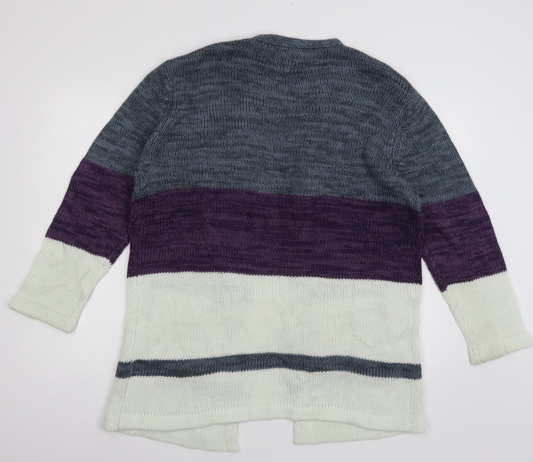 Be You Womens White Striped Knit Cardigan Jumper Size 8