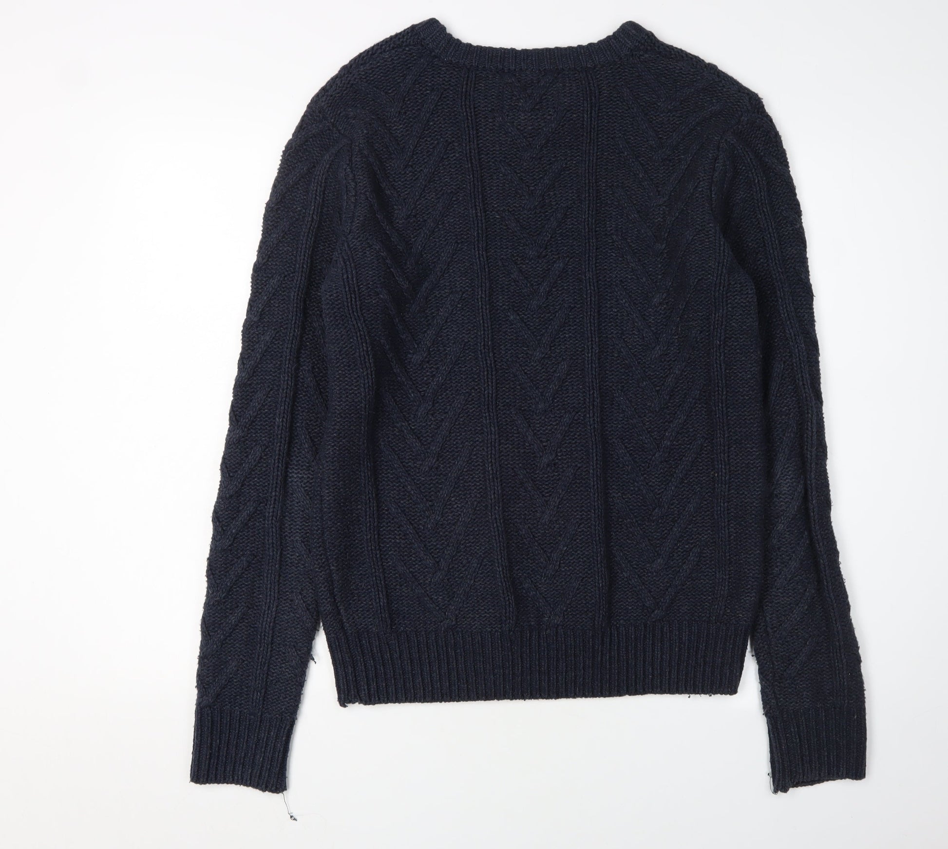Bellfield Men's Blue Medium Cable-Knit Pullover Jumper