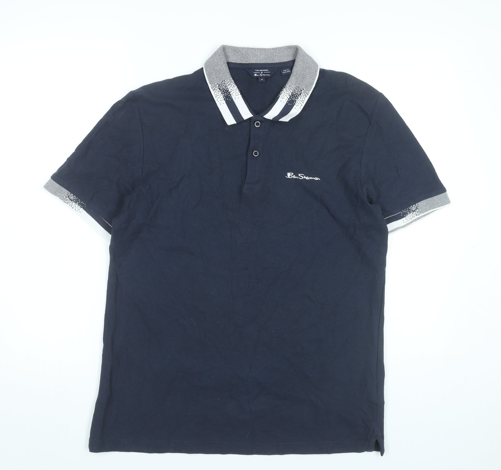 Ben Sherman Men’s Blue Cotton Polo Shirt M Short Sleeve Logo