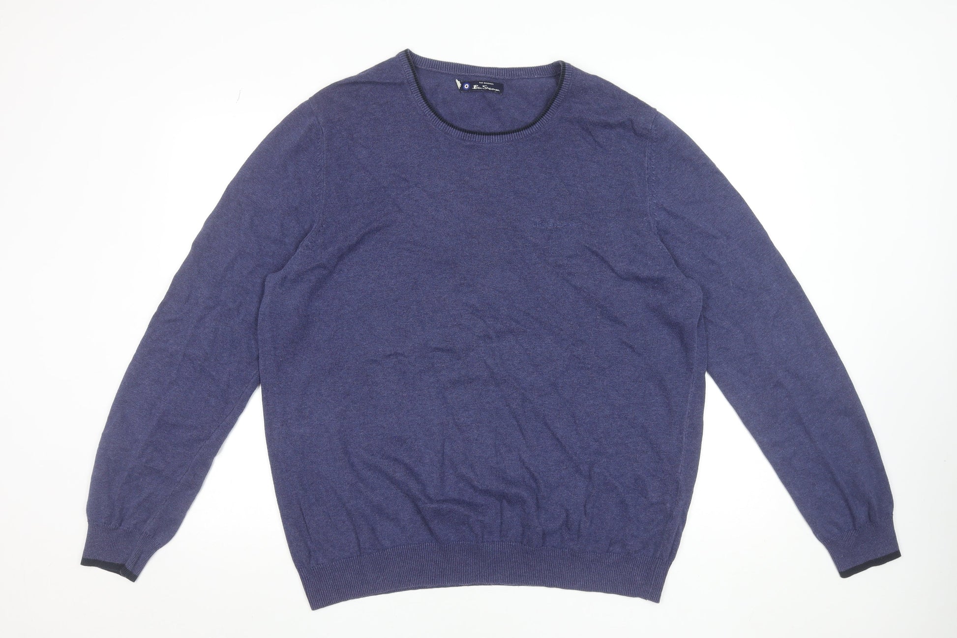 Ben Sherman Men's Blue XL Cotton Crew Neck Pullover Jumper