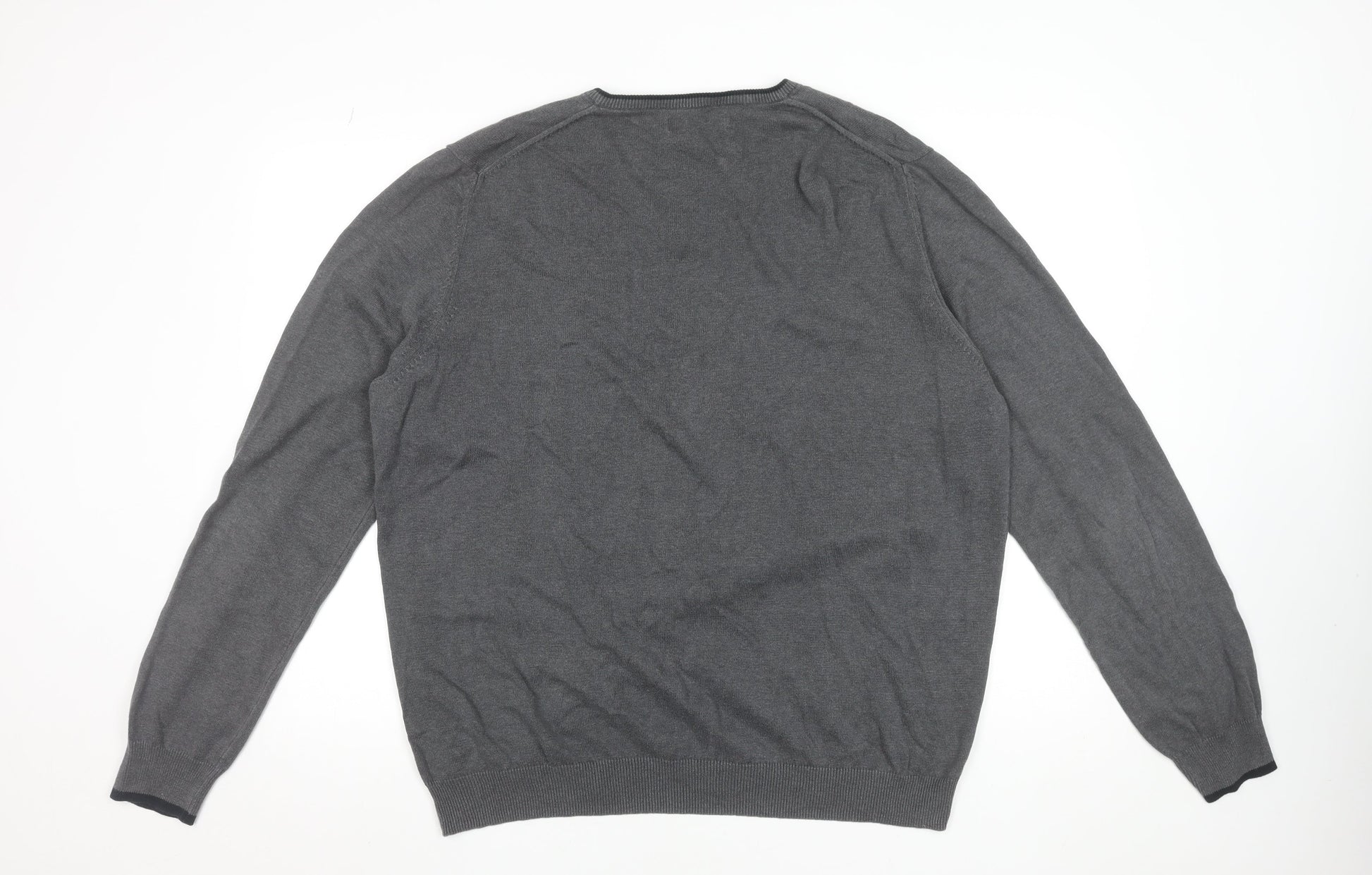 Ben Sherman Men's Grey XL V-Neck Cotton Jumper Classic Knitwear