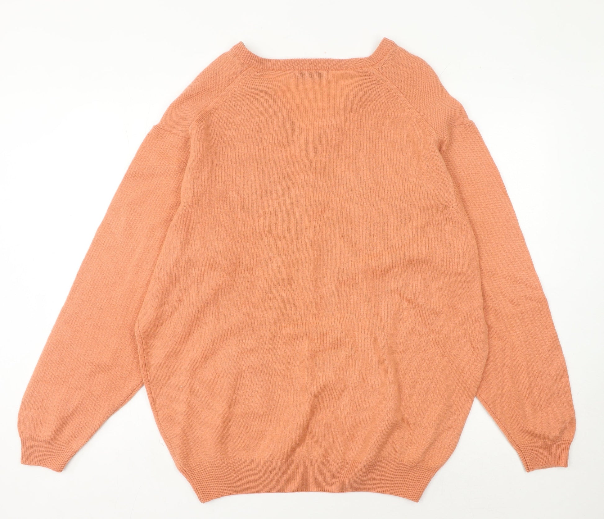 Berkertex Men’s Orange Lambswool V-Neck Jumper L Tight-Knit Vintage