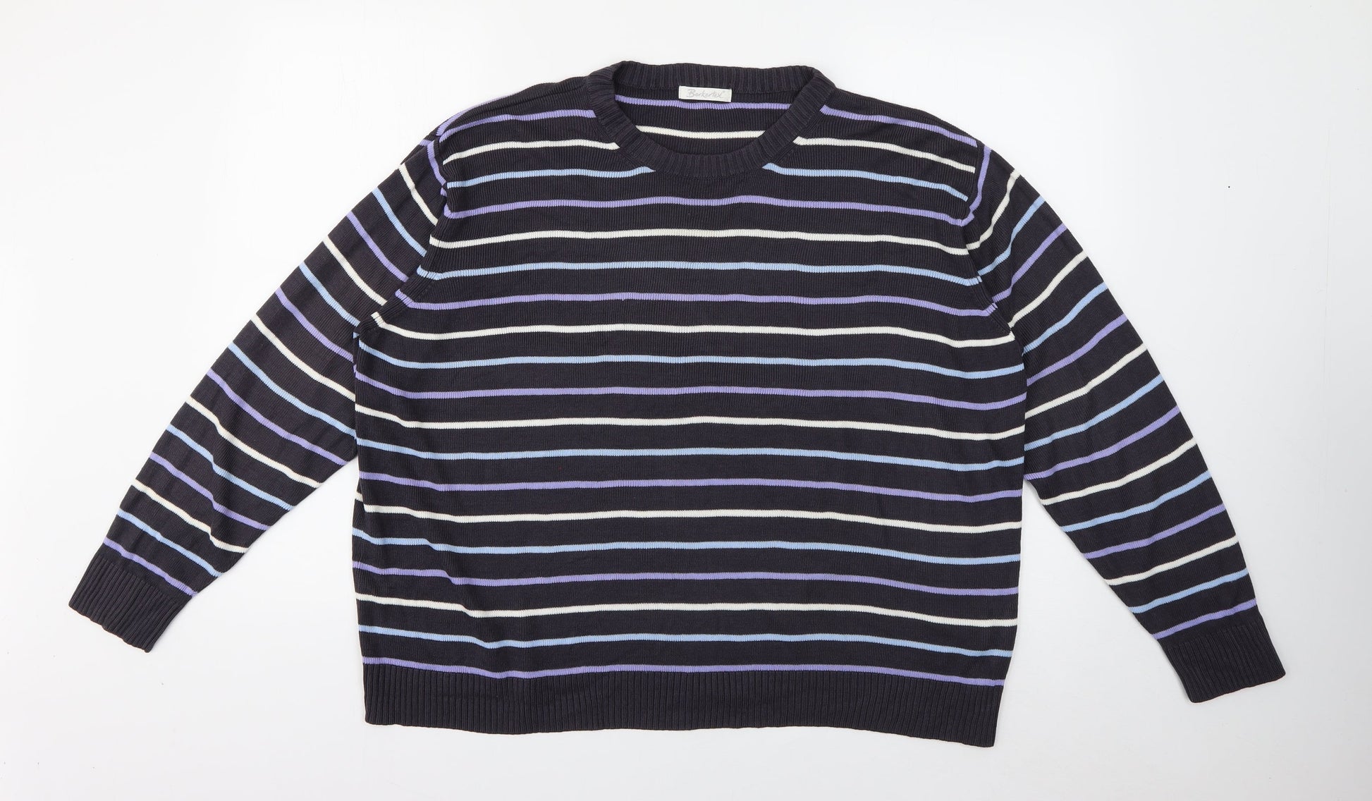 Berkertex Mens Purple Crew Neck Striped Acrylic Pullover Jumper Size 2XLT