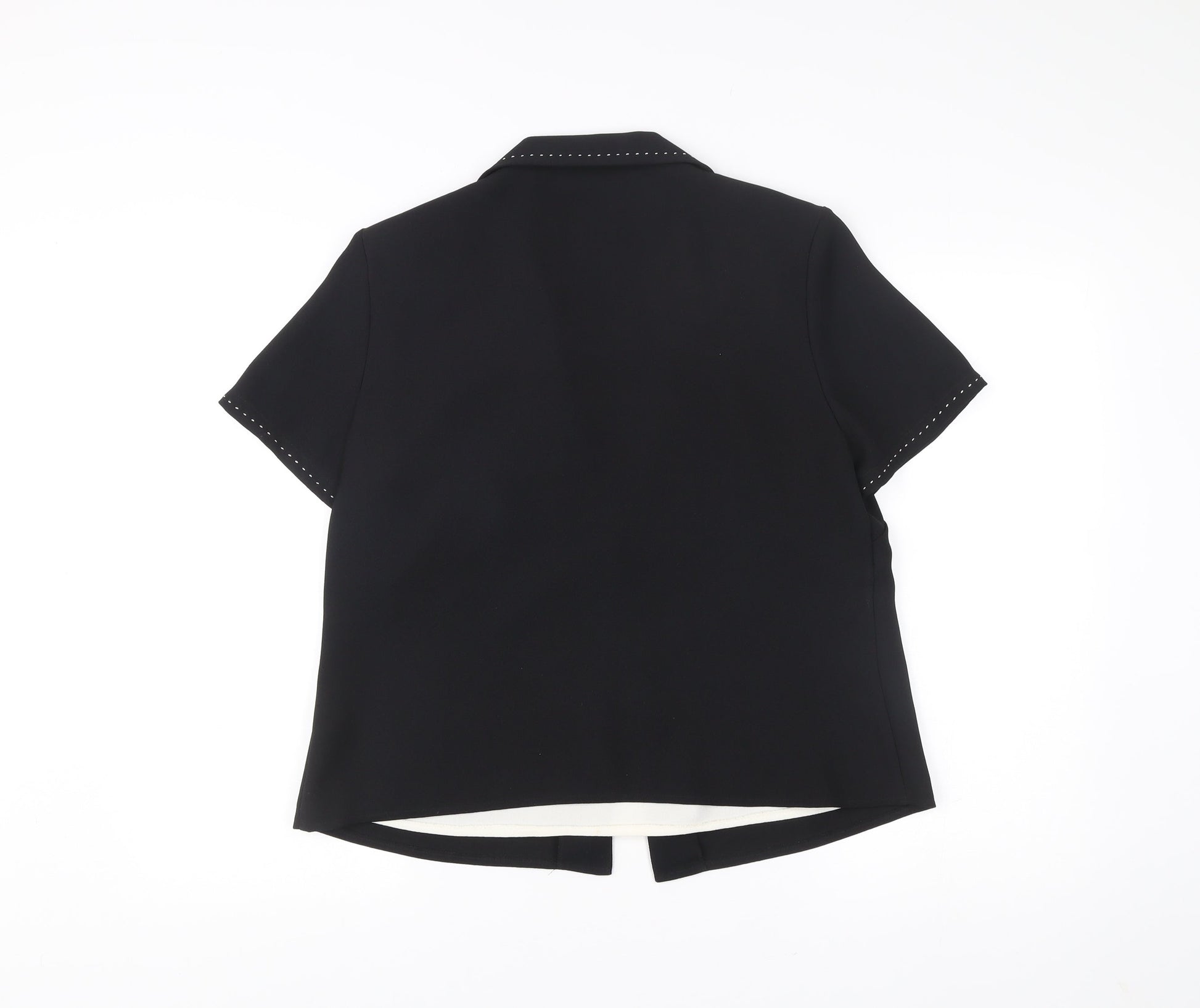 Berkertex Women Black Collared Blouse Size 16 Short Sleeve Workwear