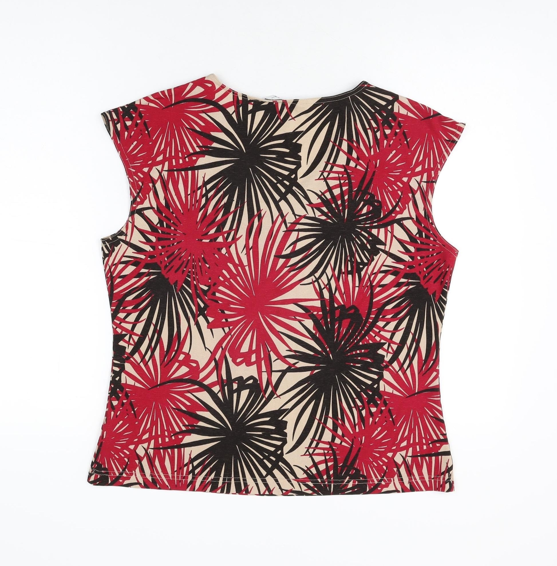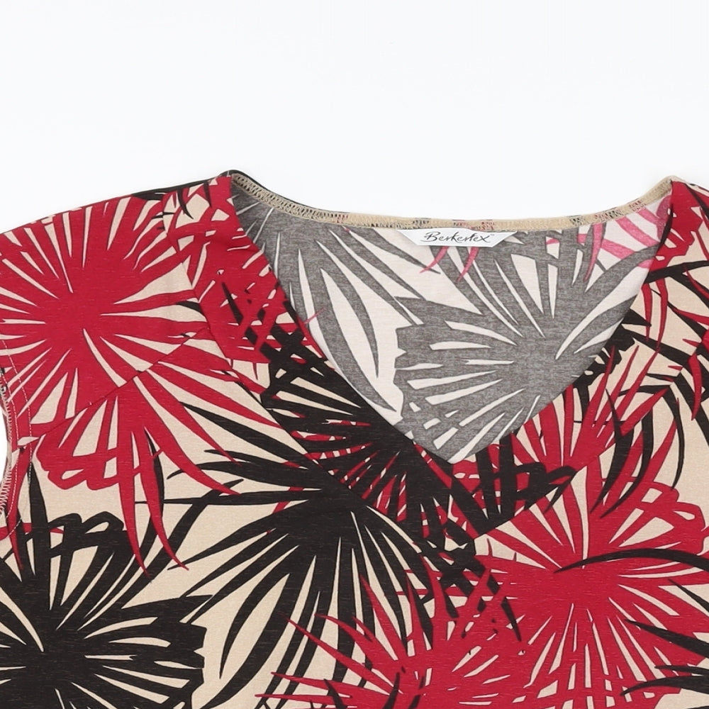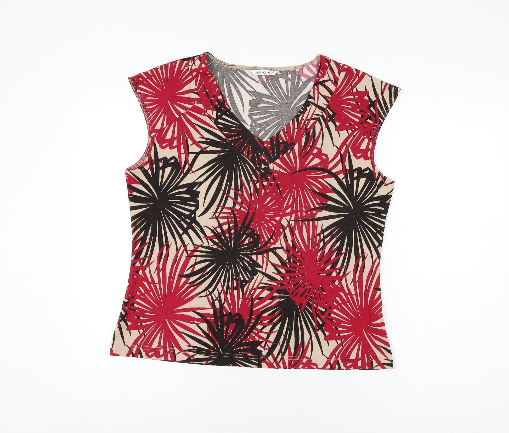 Berkertex Womens Beige Geometric Polyester Basic T-Shirt Size 16 V-Neck