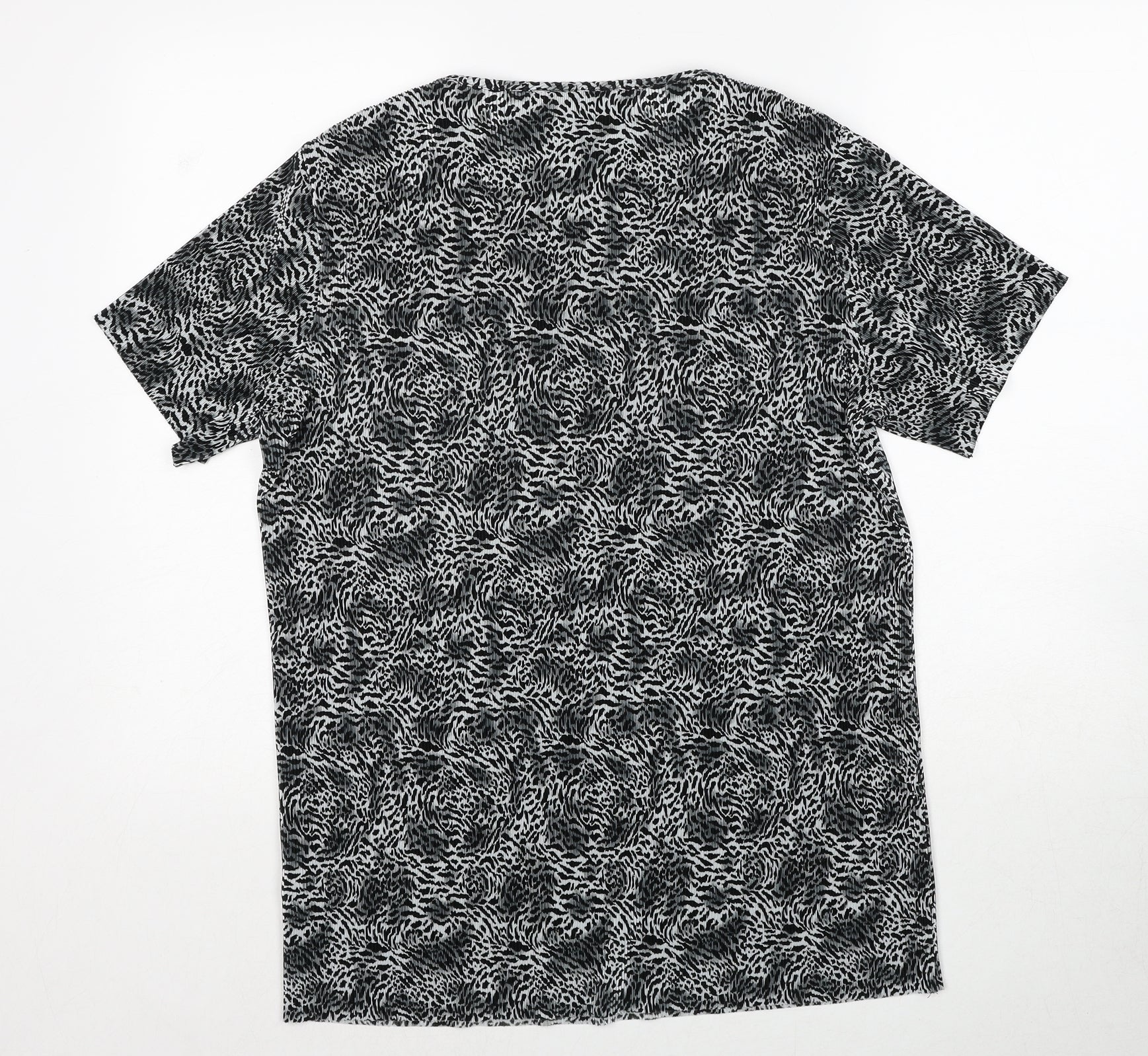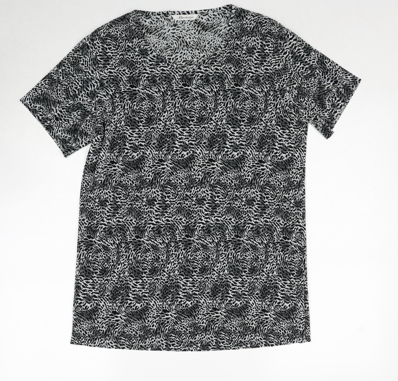 Berkertex Womens Black Geometric Polyester Basic T-Shirt Size 12 Round Neck