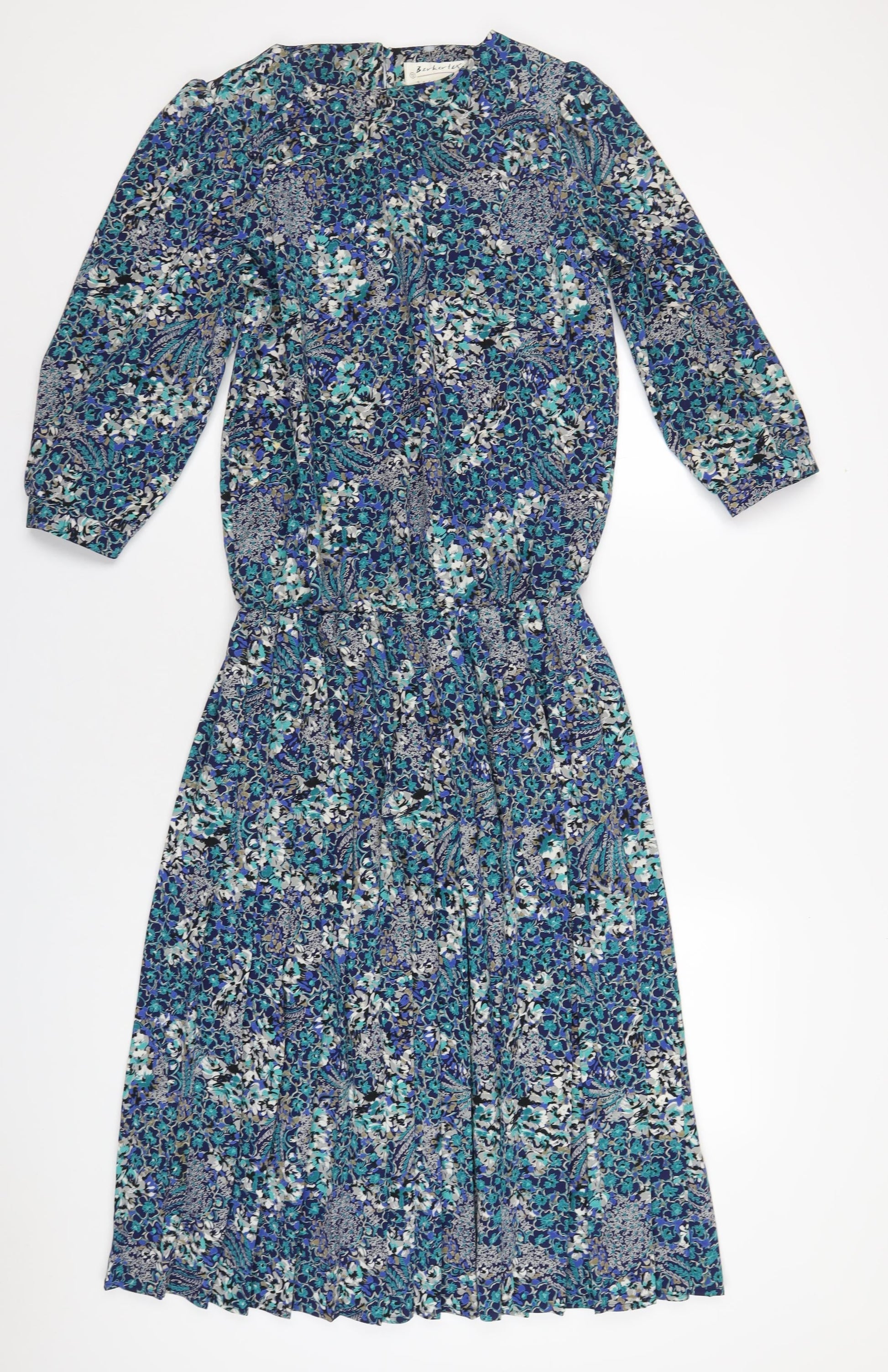 Berkertex Womens Blue Geometric Polyester A-Line Size 12 Round Neck Button
