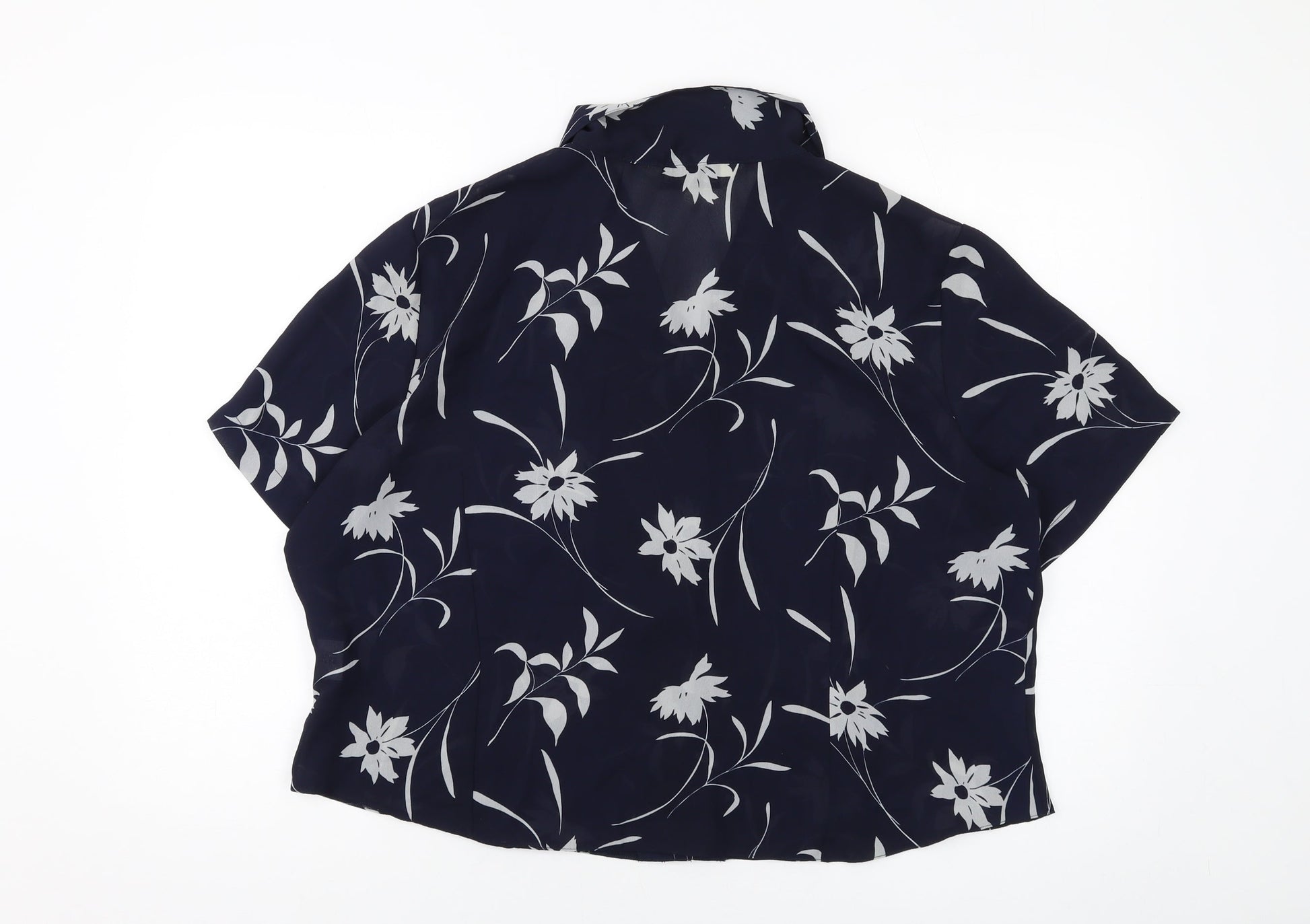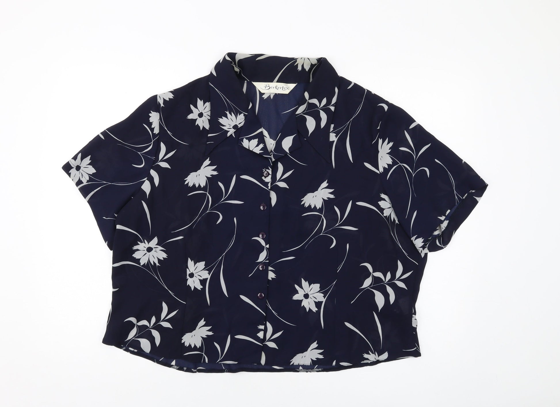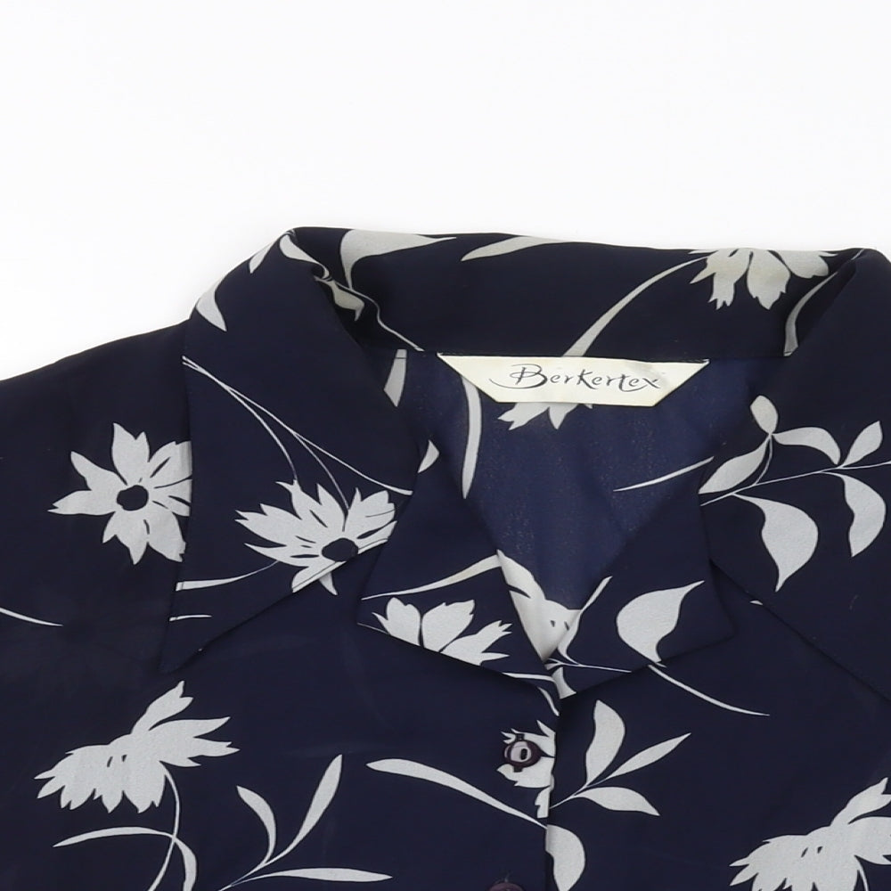 Berkertex Womens Blue Geometric Polyester Basic Button-Up Size 24 Collared