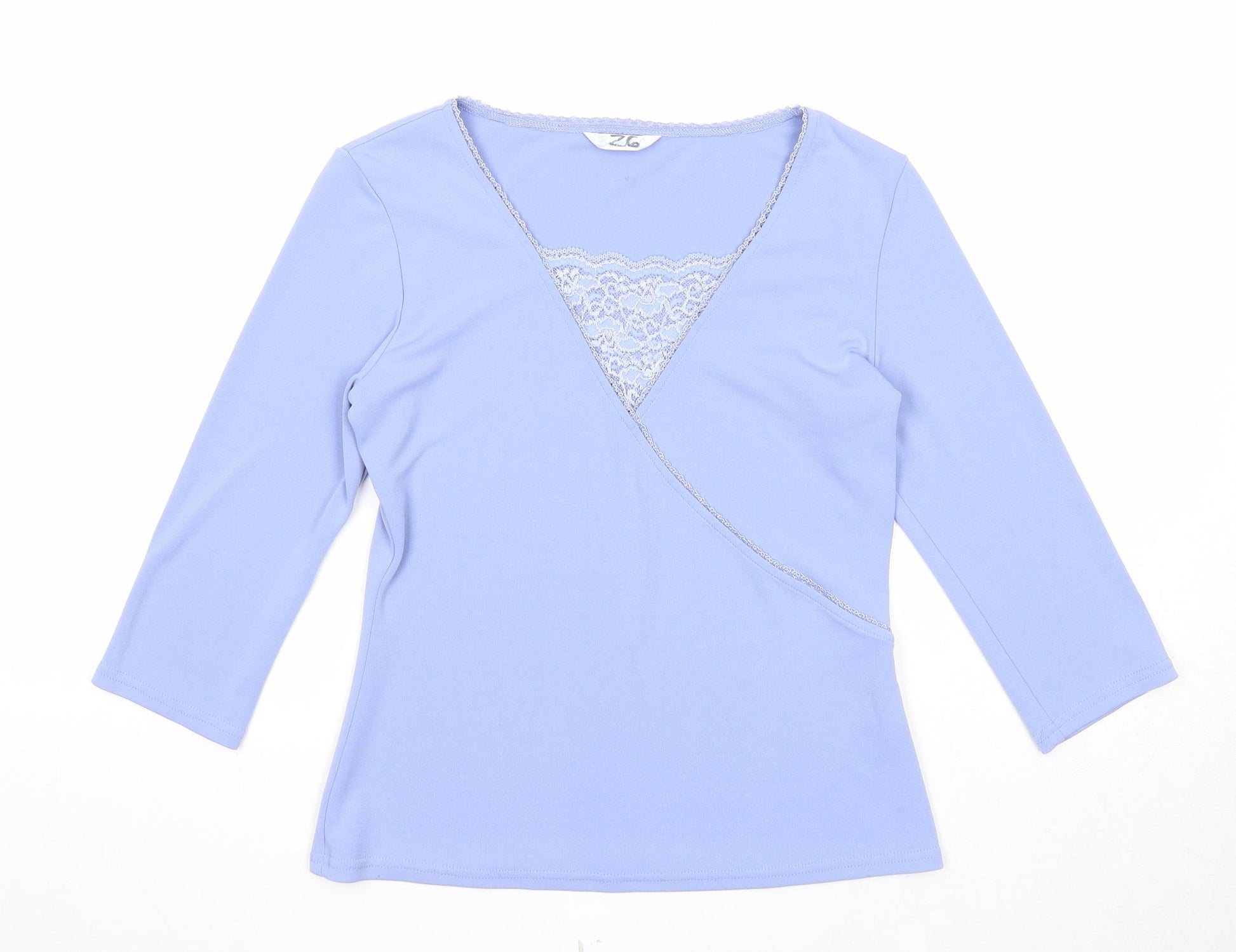Berkertex Womens Blue Polyester Basic Blouse Size 12 Scoop Neck - Lace Detail