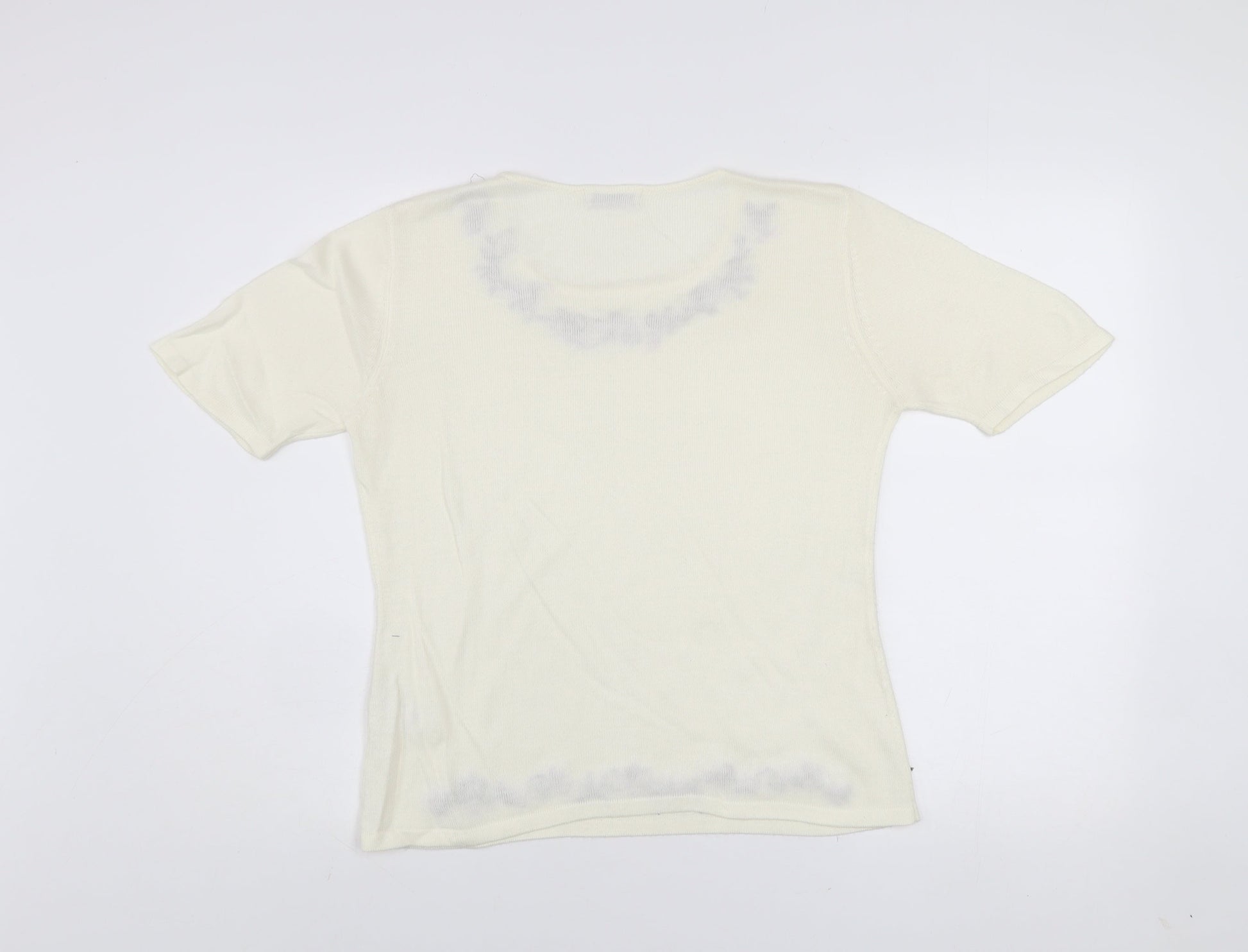 Berkertex Women's Ivory Floral Embroidered Knit Top Size 12