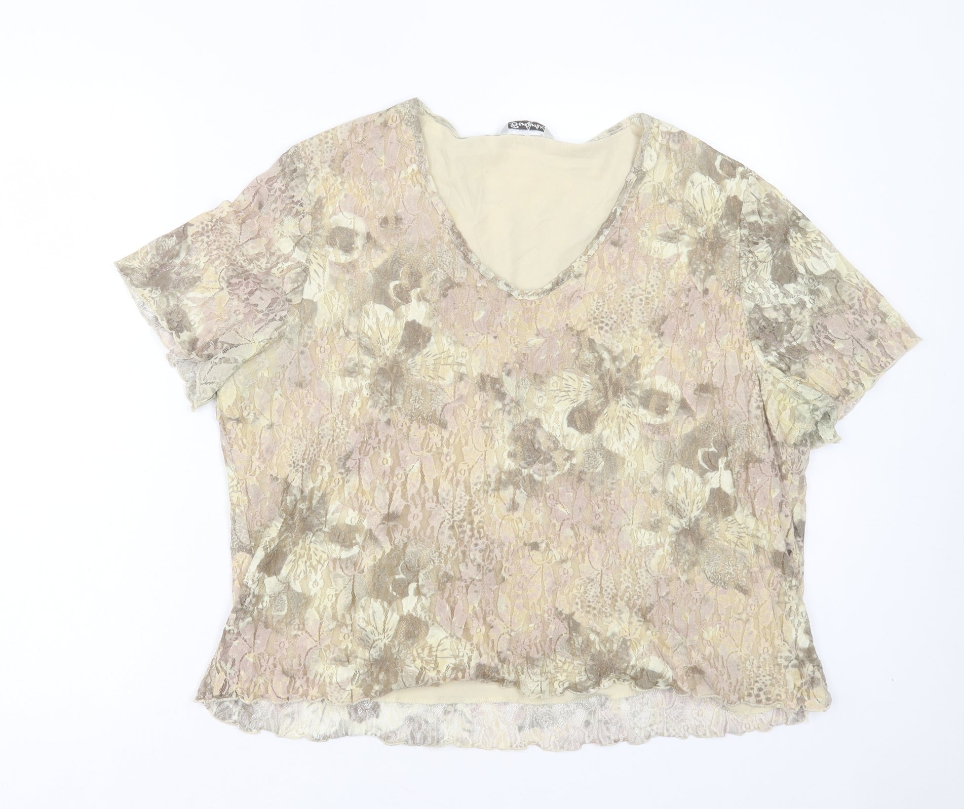 Berkertex Womens Multicoloured Geometric Nylon Basic T-Shirt Size 14 V-Neck