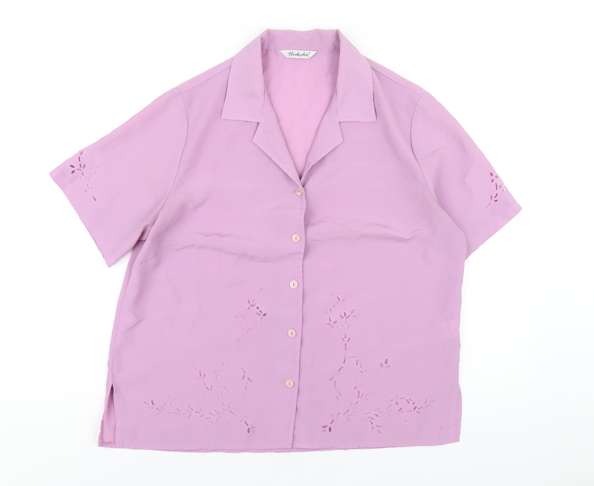 Berkertex Womens Purple Polyester Basic Button-Up Size 14 Collared