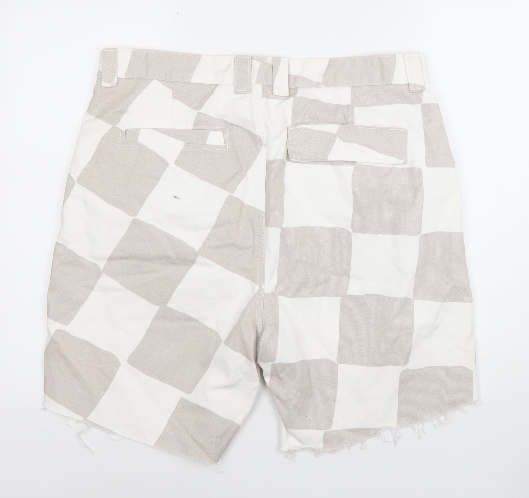 Bershka Men Beige Check Chino Shorts Size L 34in Casual Cotton