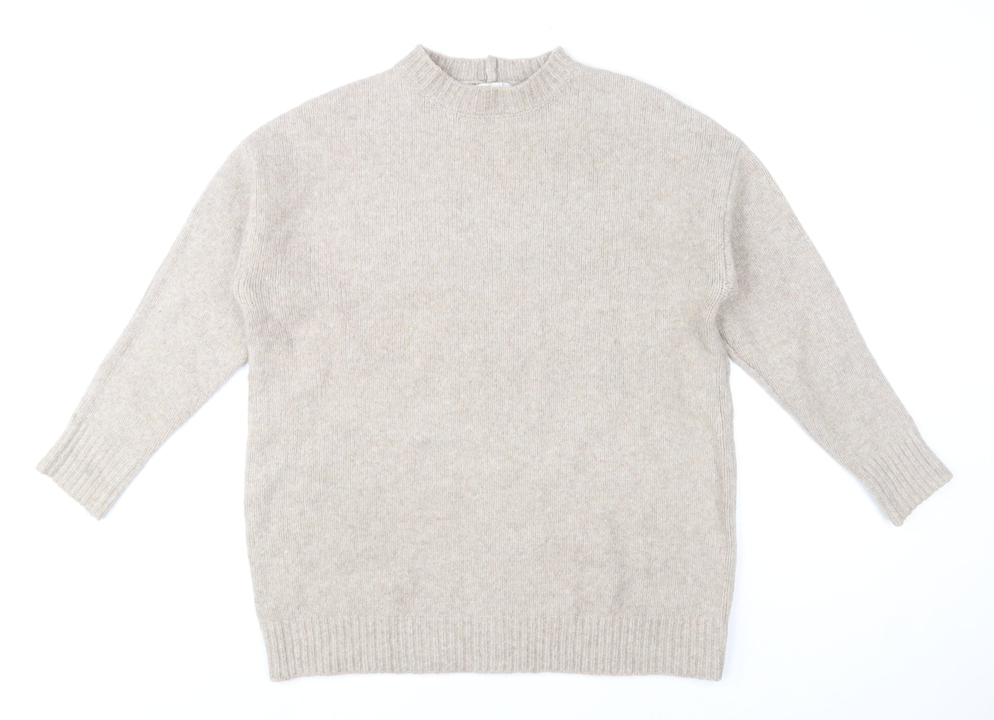 Bershka Men Beige High Neck Knit Pullover Jumper Size S