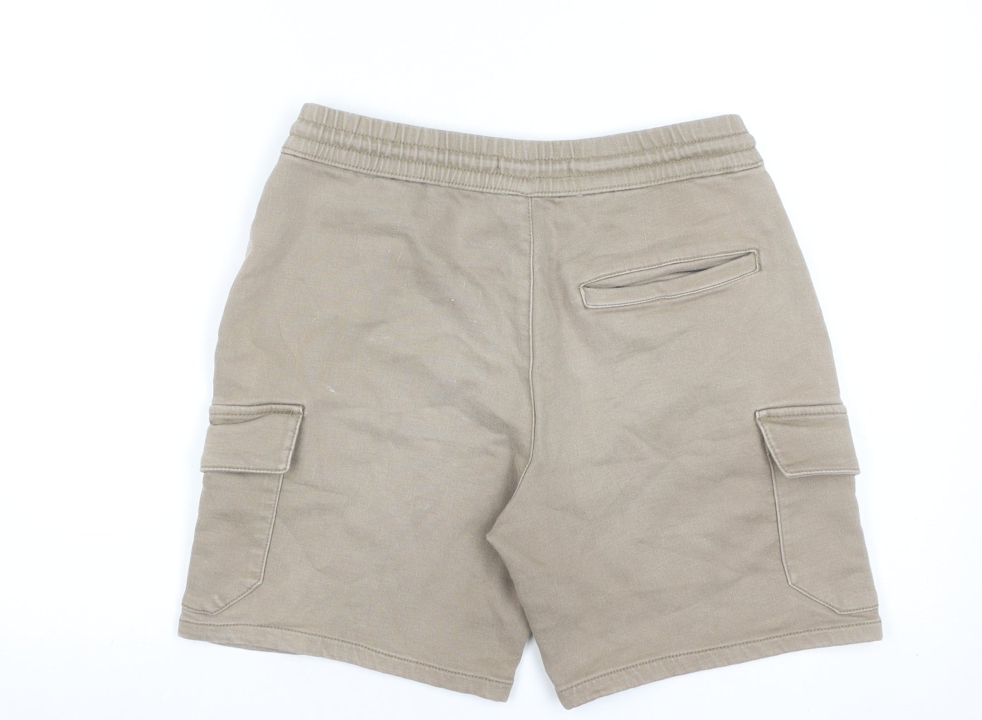 Bershka Men's Beige Cargo Shorts Size M Cotton Blend Casual