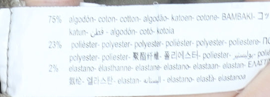 - Material Breakdown: 75% Cotton 23% Polyester 2% Elastane