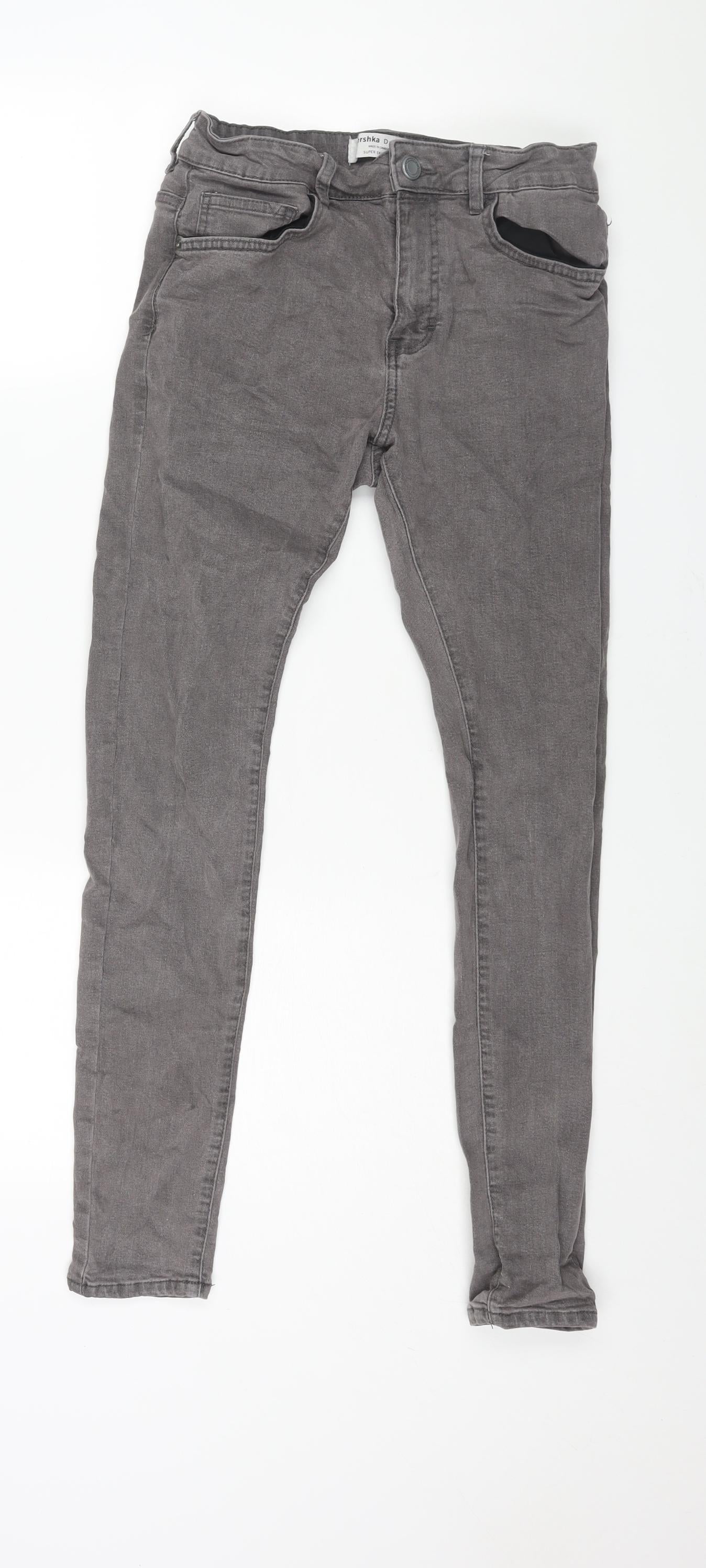 Bershka Mens Grey Cotton Skinny Jeans Size 30 in L28 in Regular Zip