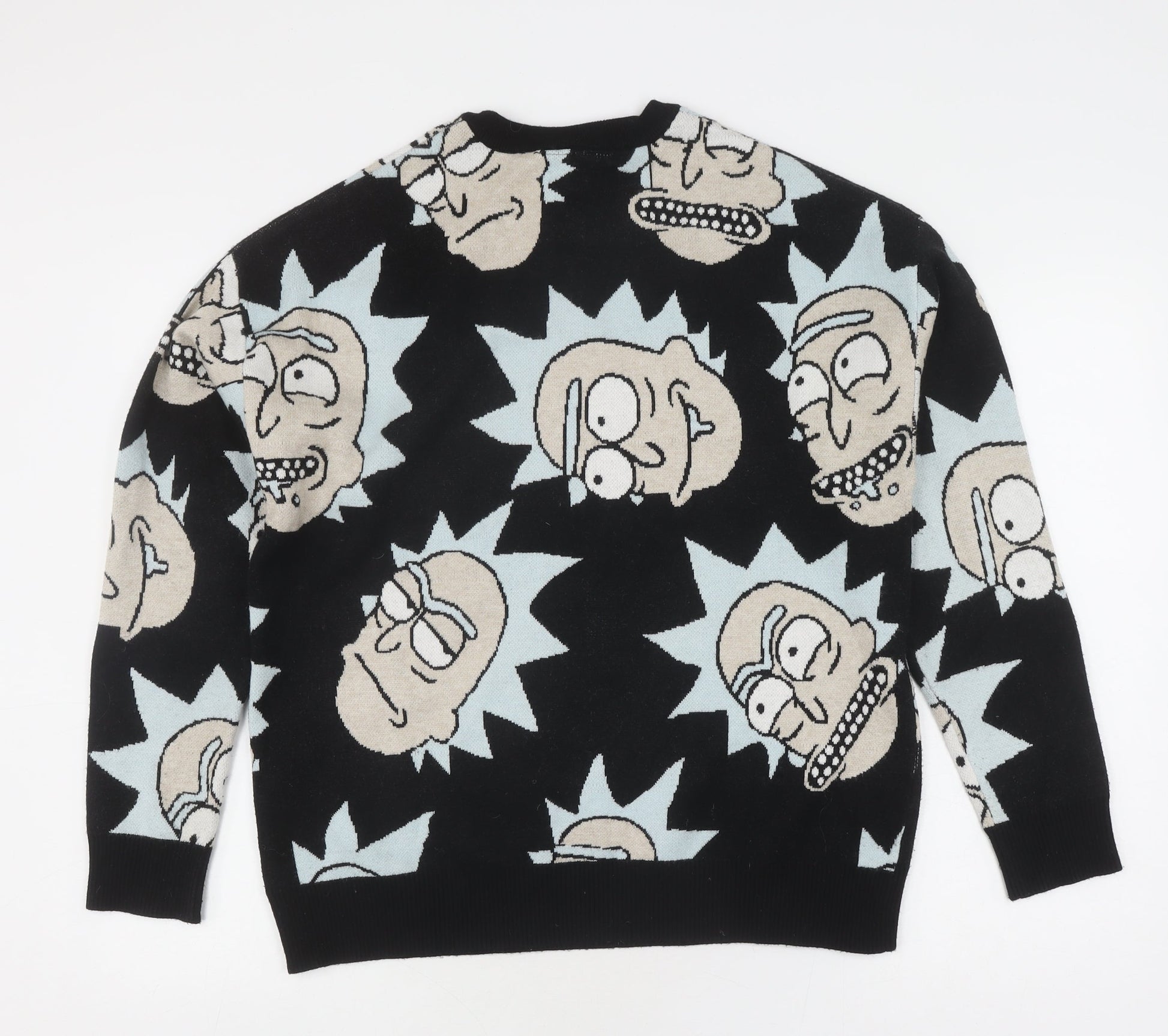Bershka Rick and Morty Men's Black M Pullover Jumper