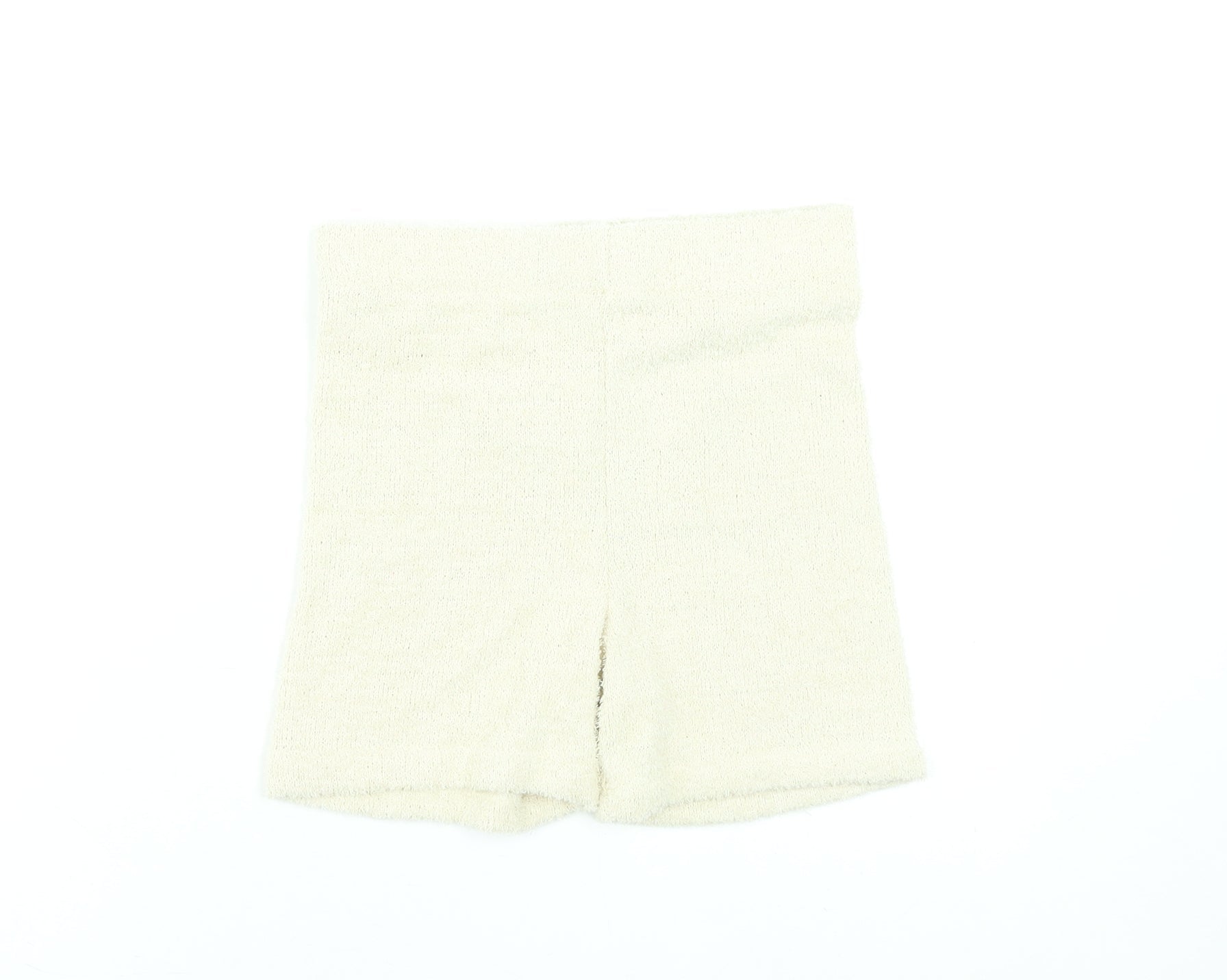 Bershka Women Beige High Rise Biker Shorts Size 8 Polyester Blend