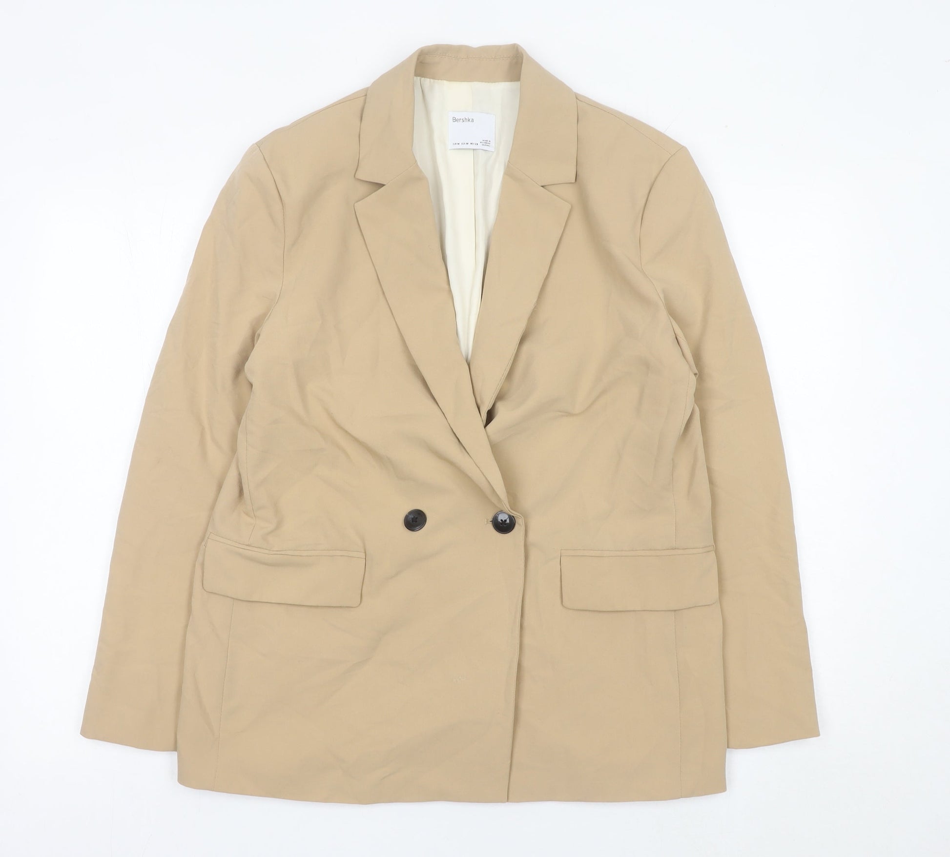 Bershka Women Beige Size 12 Double-Breasted Blazer Jacket