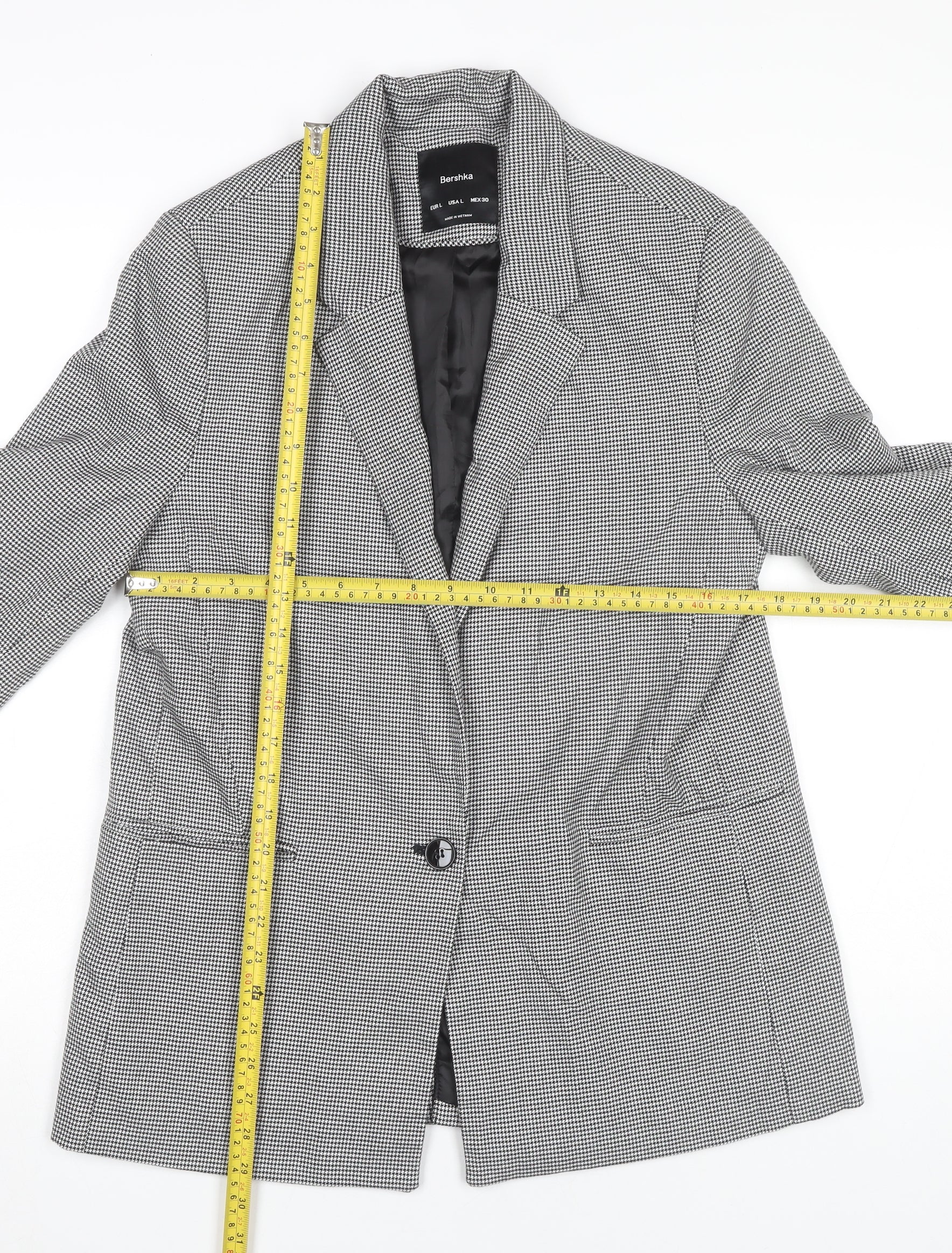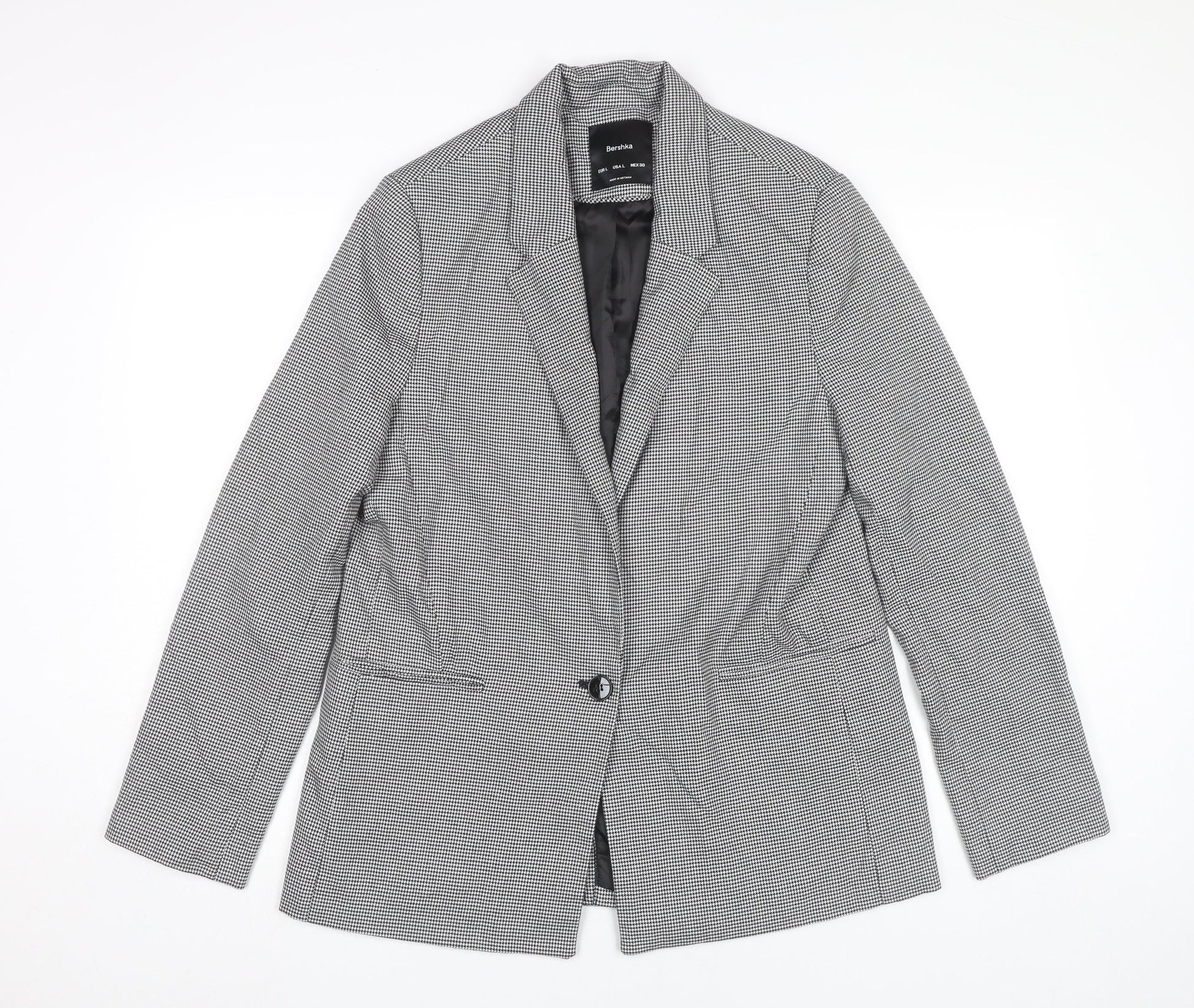 Bershka Women Black Houndstooth Blazer L Regular Fit Tailored Jacket
