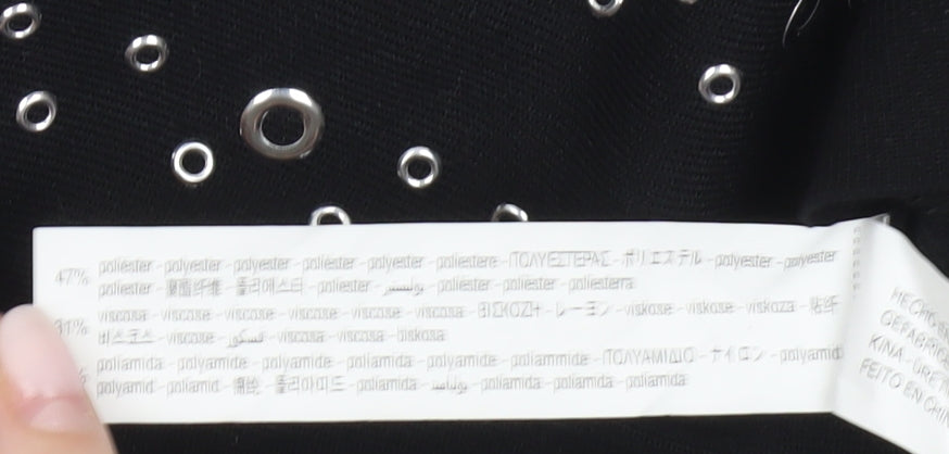 Bershka Women Black XS Studded Mock Neck Cropped Tank Top