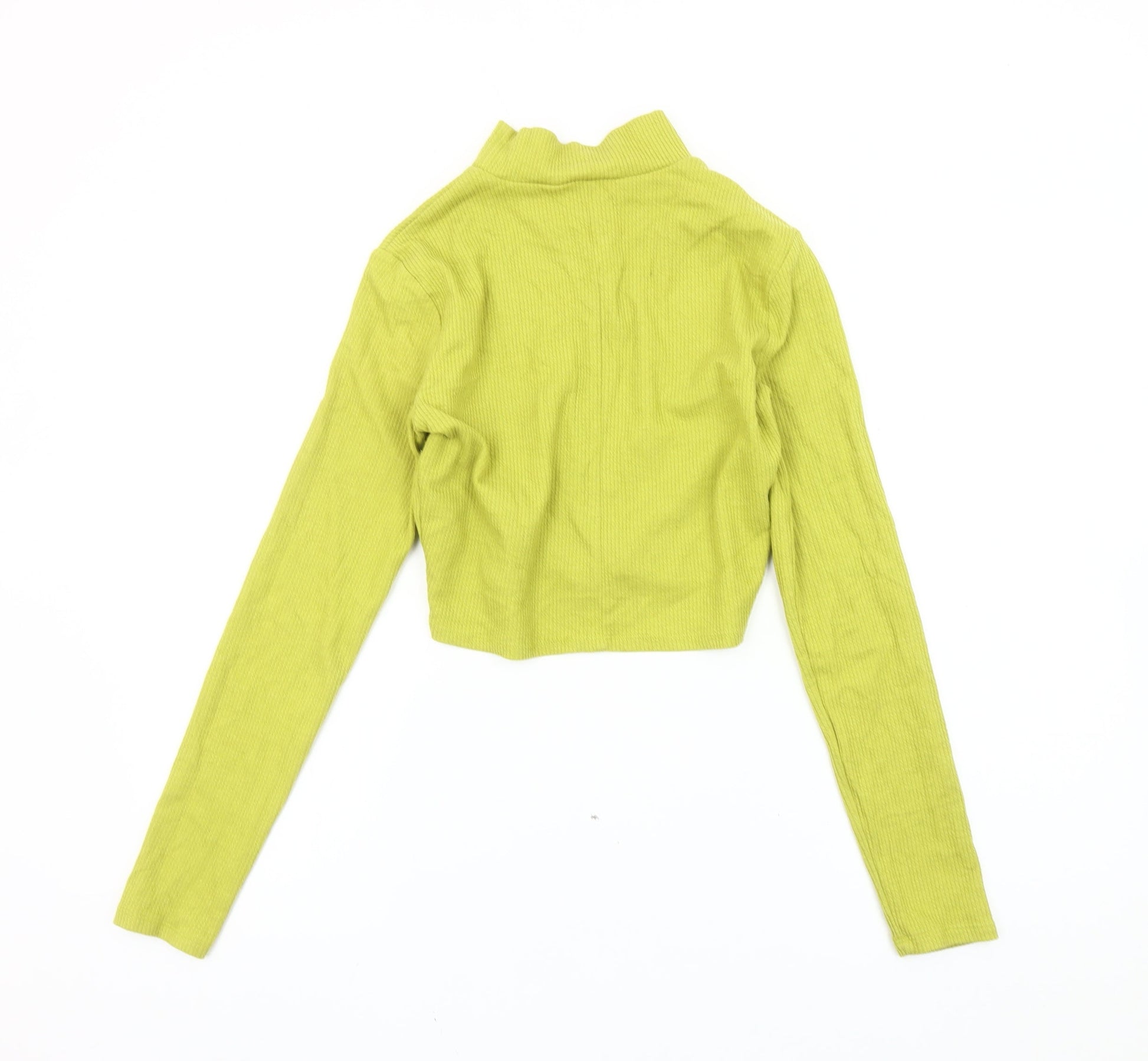Bershka Women Green Cropped Mock Neck Long Sleeve Slim Fit Top L