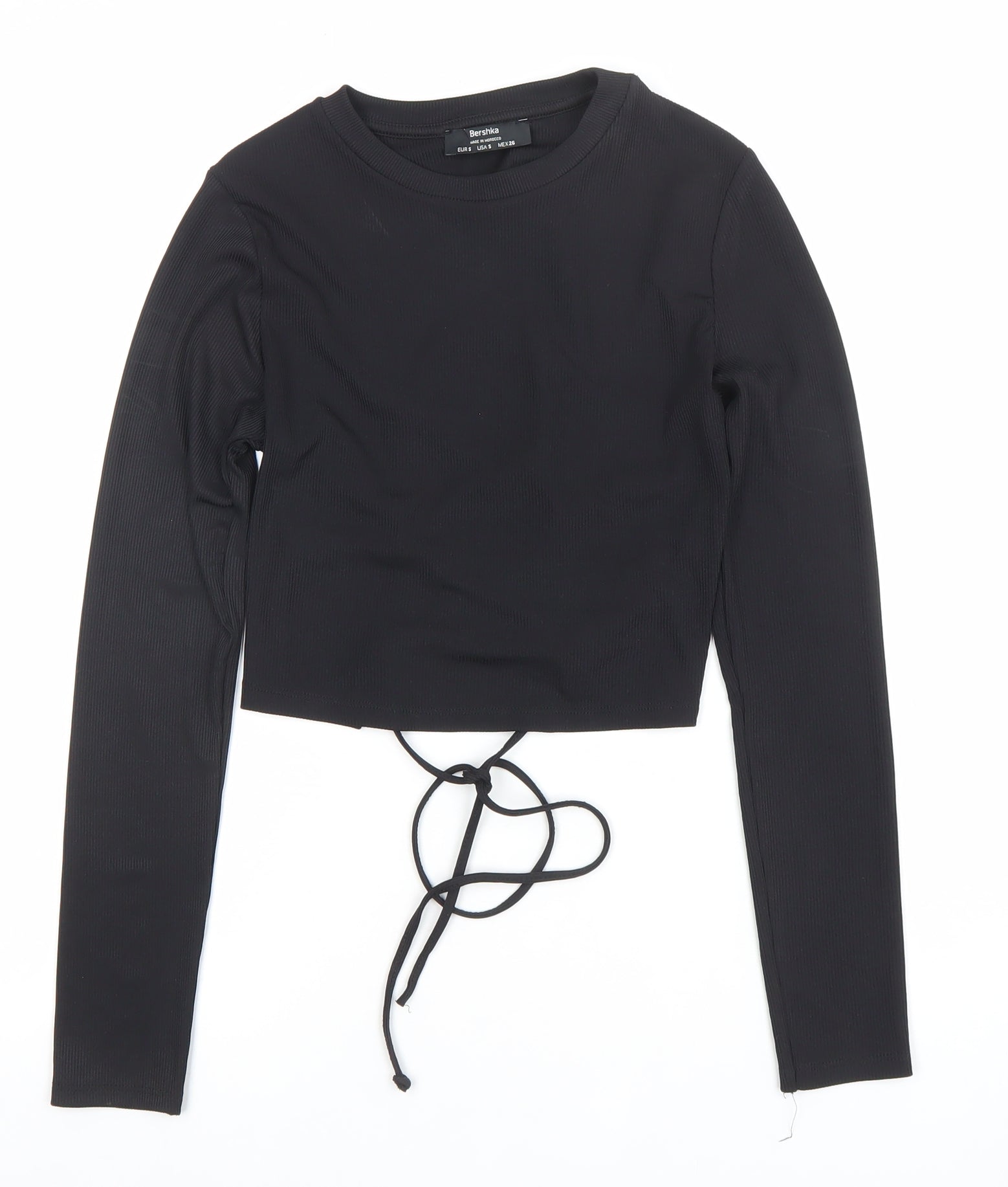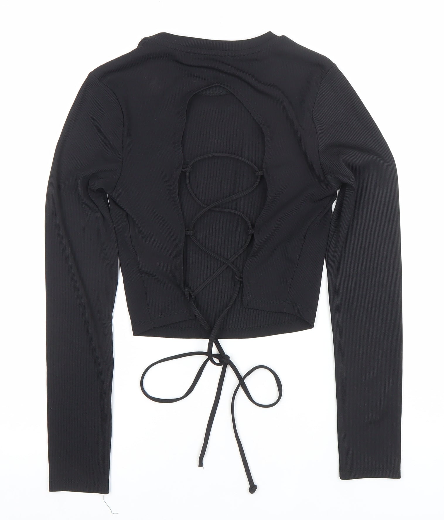 Bershka Women’s Black Cropped Lace Up Long Sleeve Top Size S