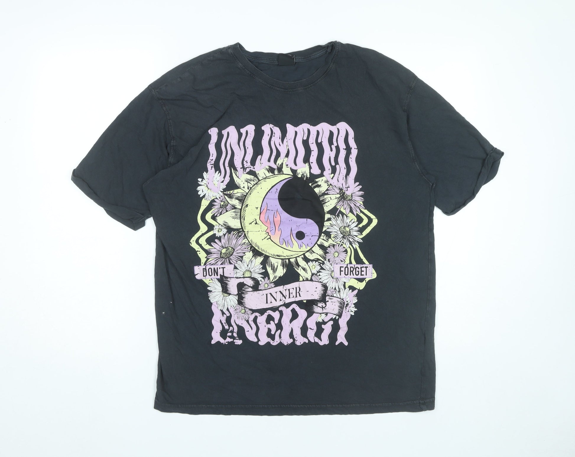 Bershka Women’s Black Graphic T-Shirt Size 12 Cotton Short Sleeve Top