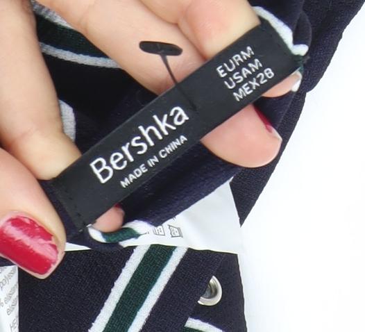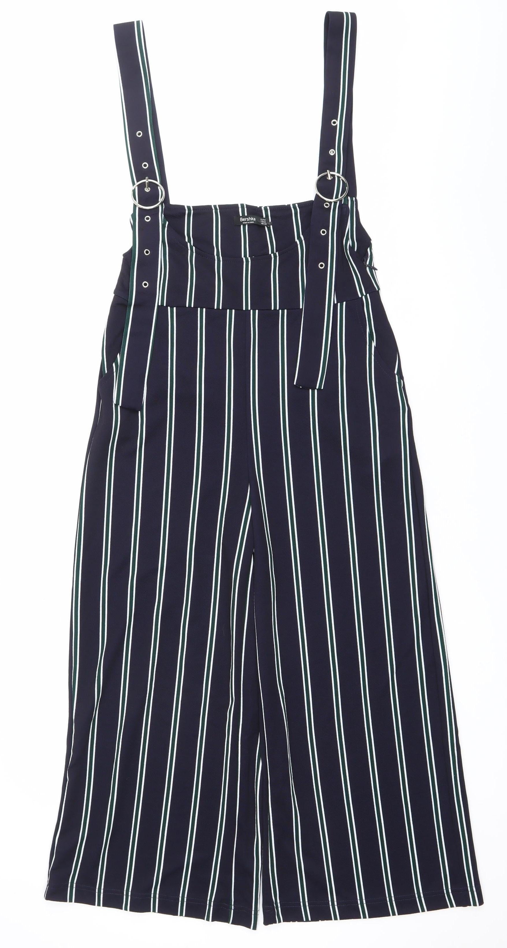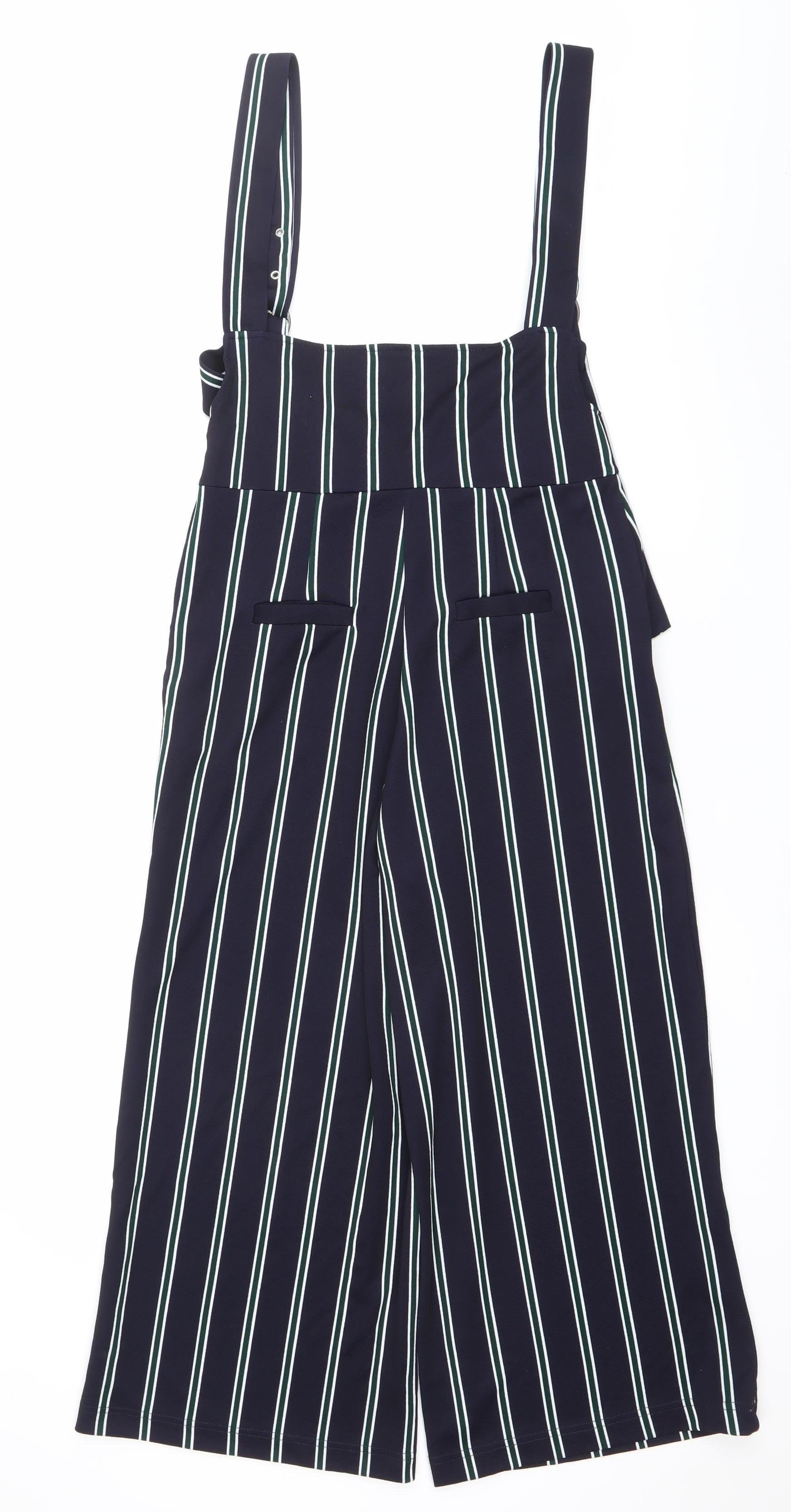 Bershka Women’s Blue Striped Wide-Leg Dungaree UK 10