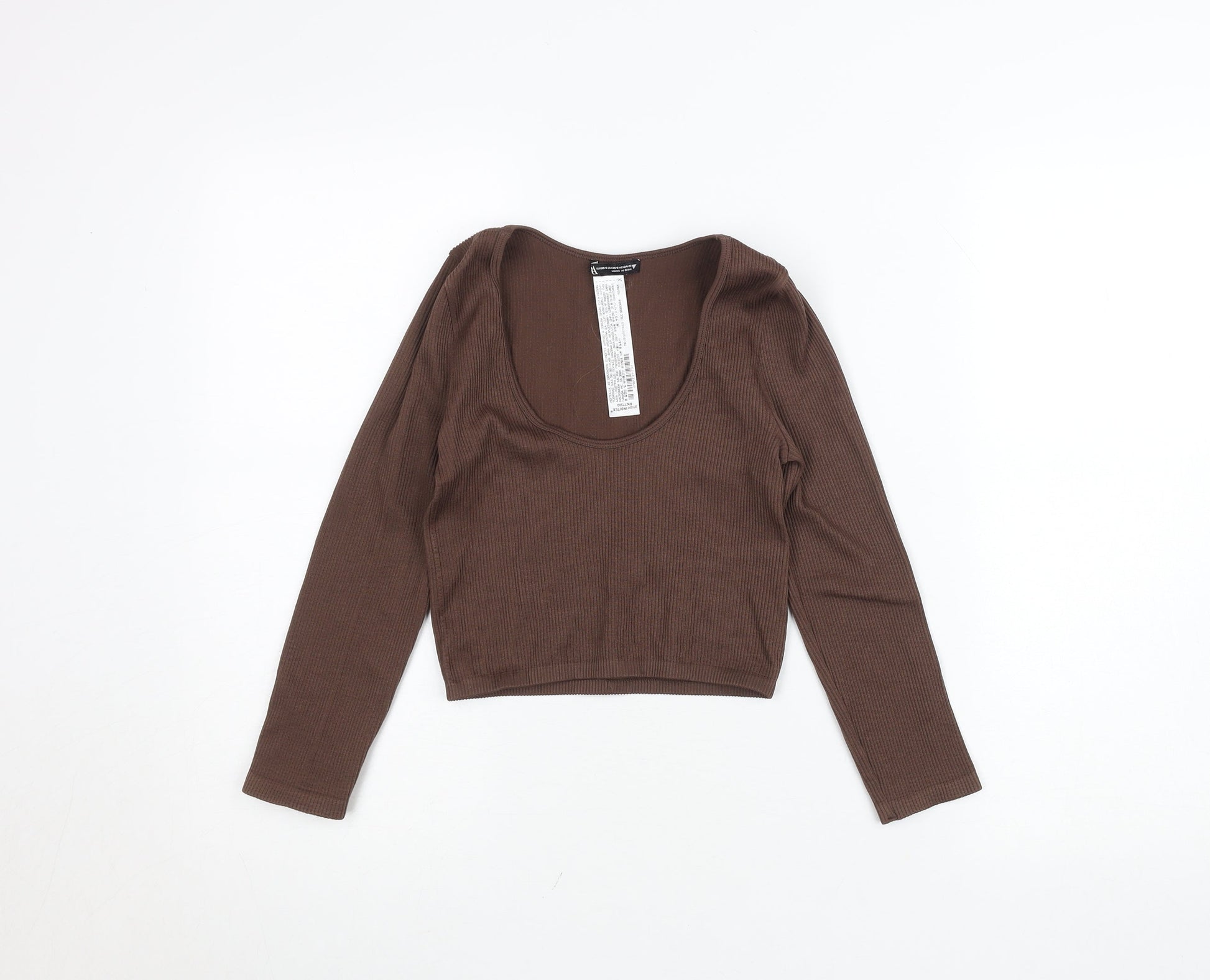 Bershka Women’s Brown Ribbed Cropped Long Sleeve Top XS