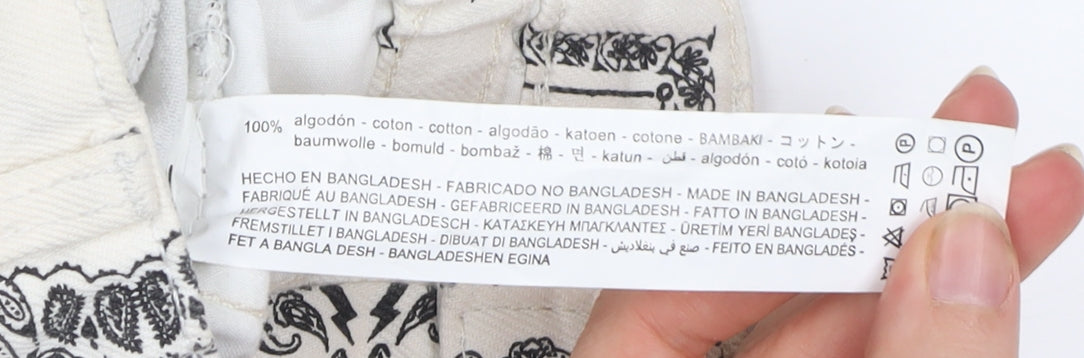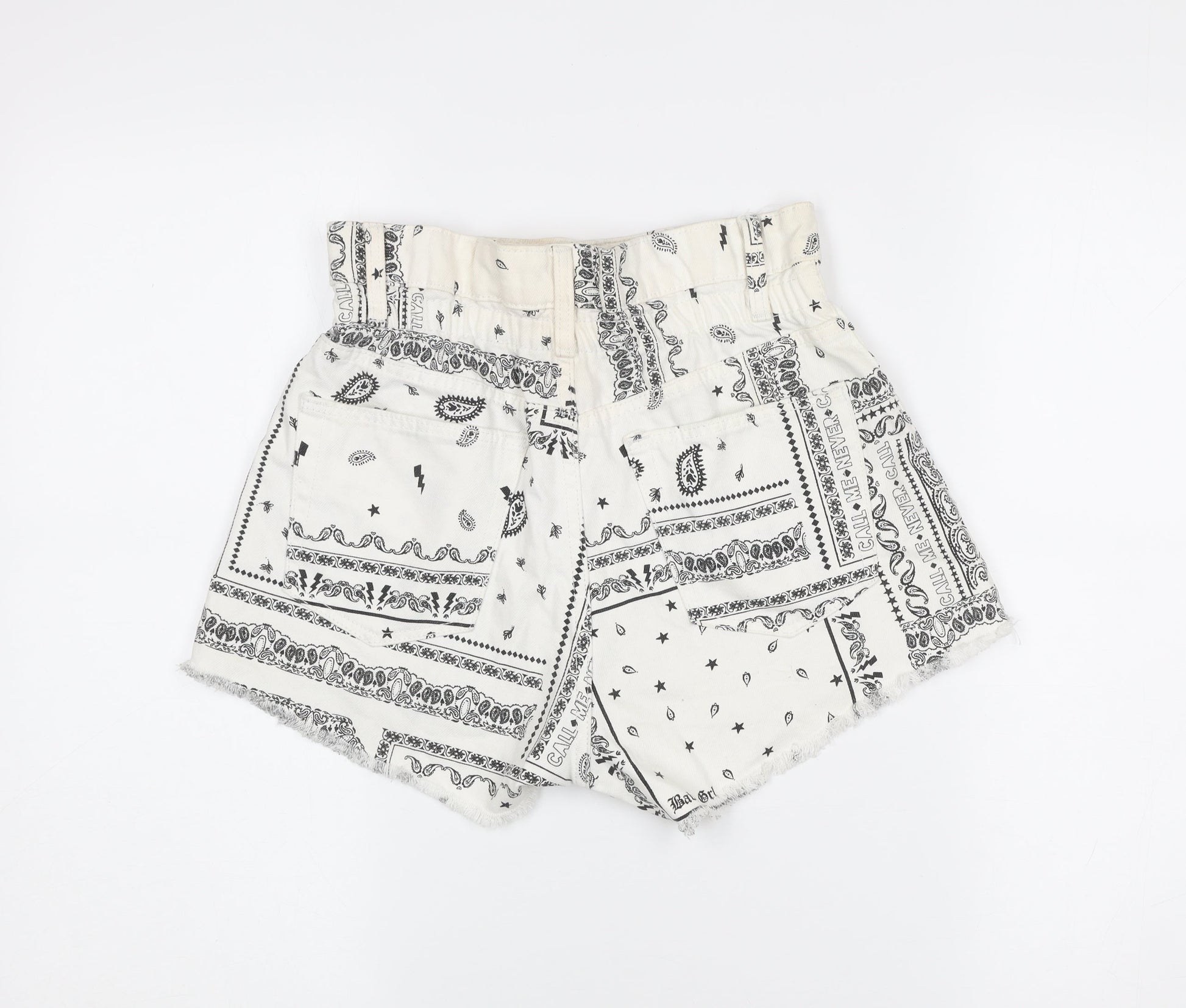 Bershka Women’s White High Rise Cut-Off Cotton Shorts Size 8