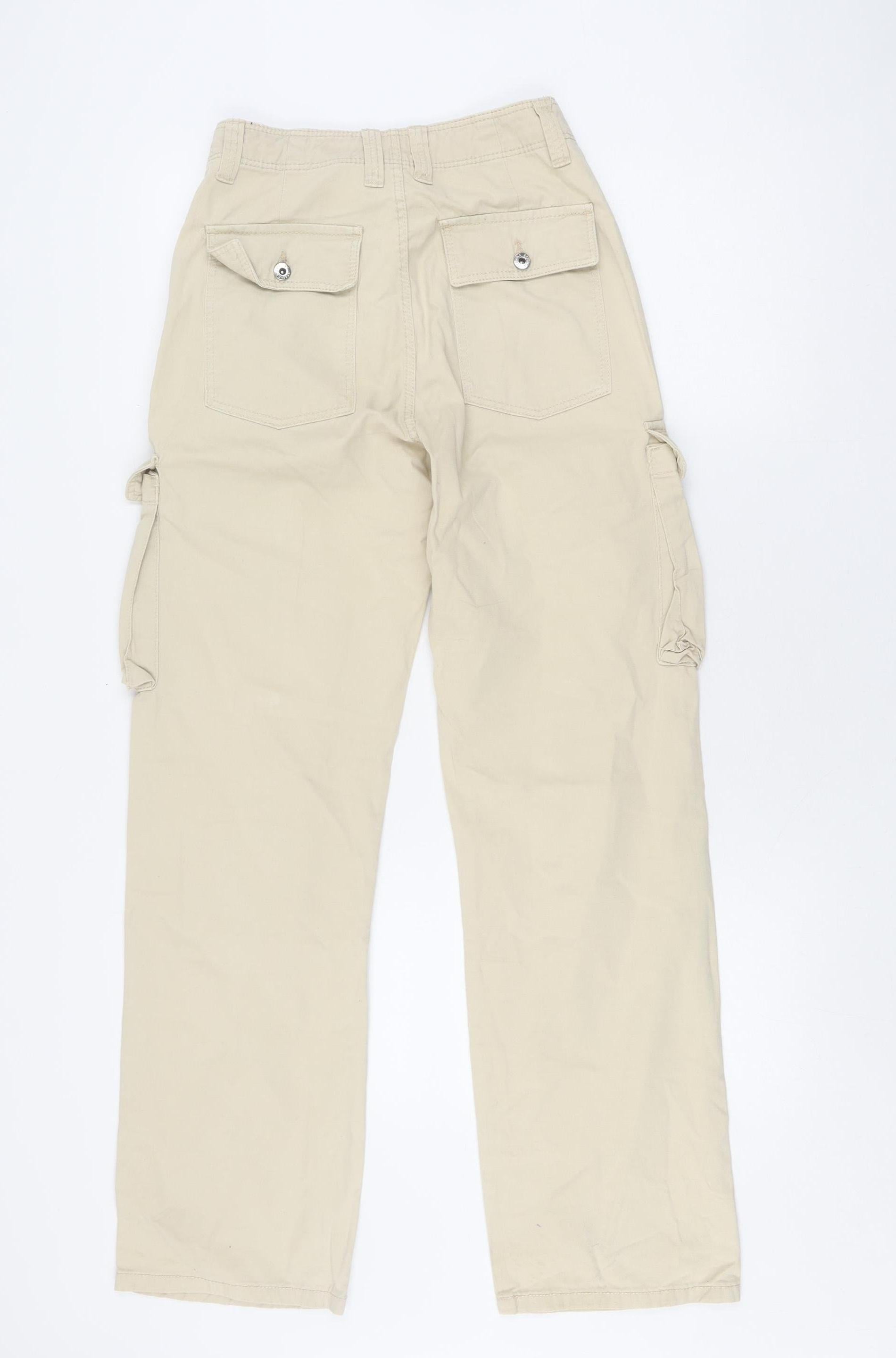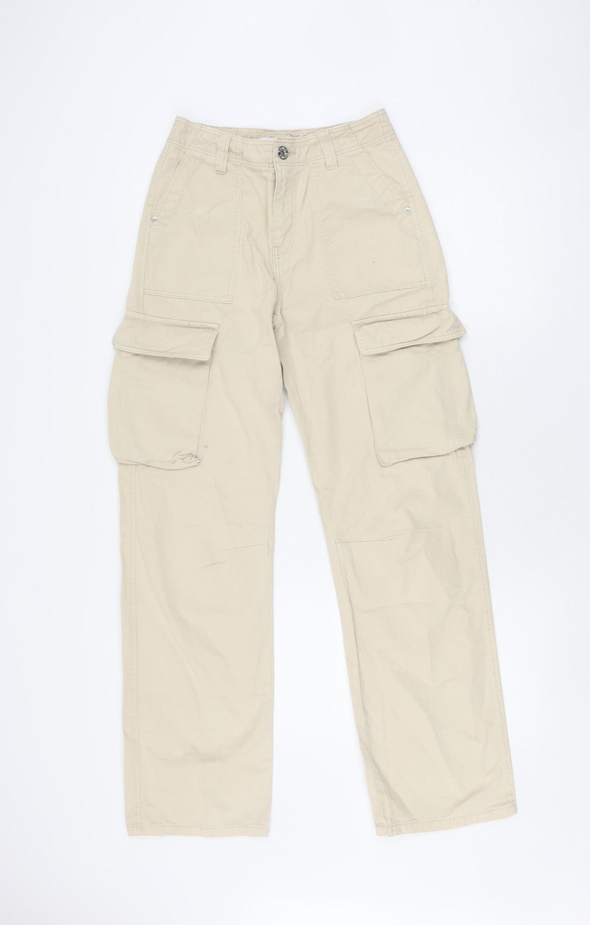 Bershka Women's Beige Cargo Trousers, Size 4, 100% Cotton