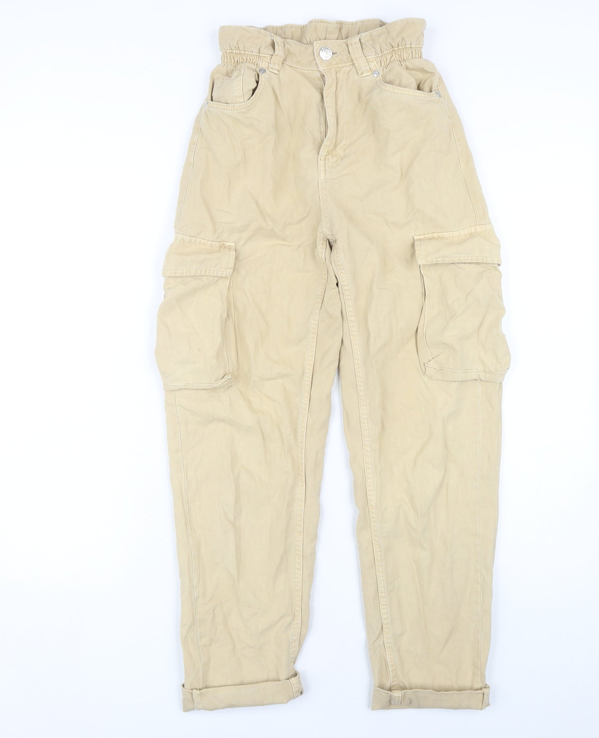 Bershka Women's Beige Cargo Trousers, Size 6, Spring Ready