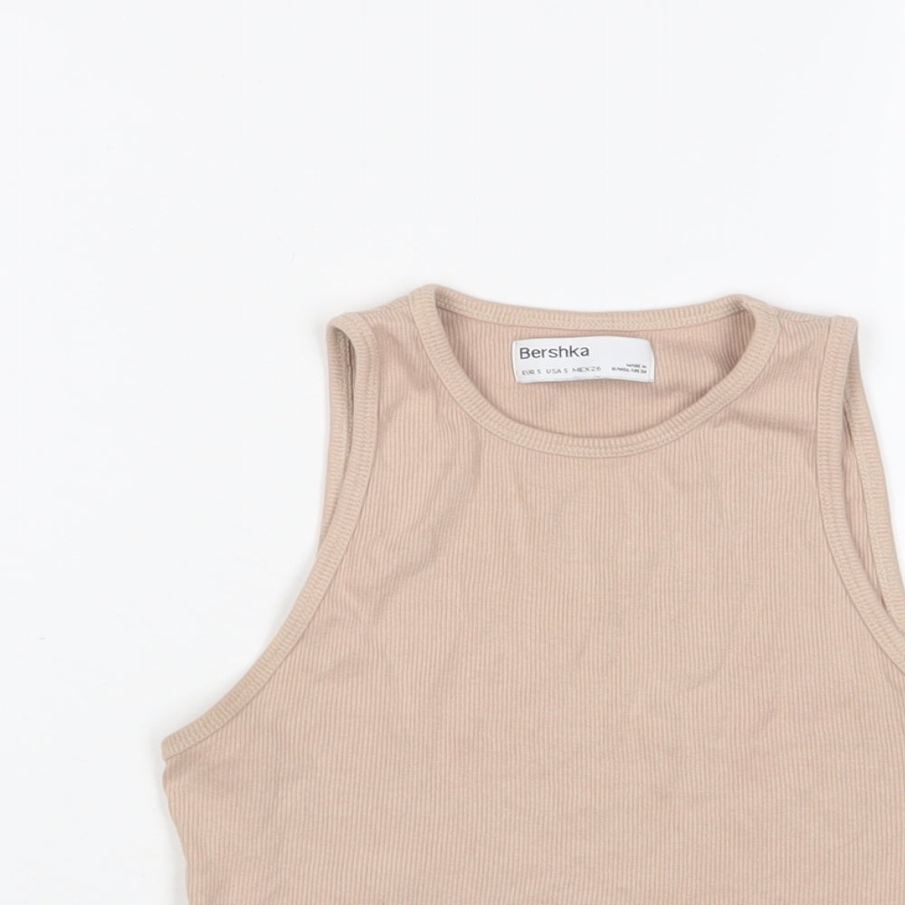 Bershka Womens Beige Cotton Cropped Tank Size S Crew Neck