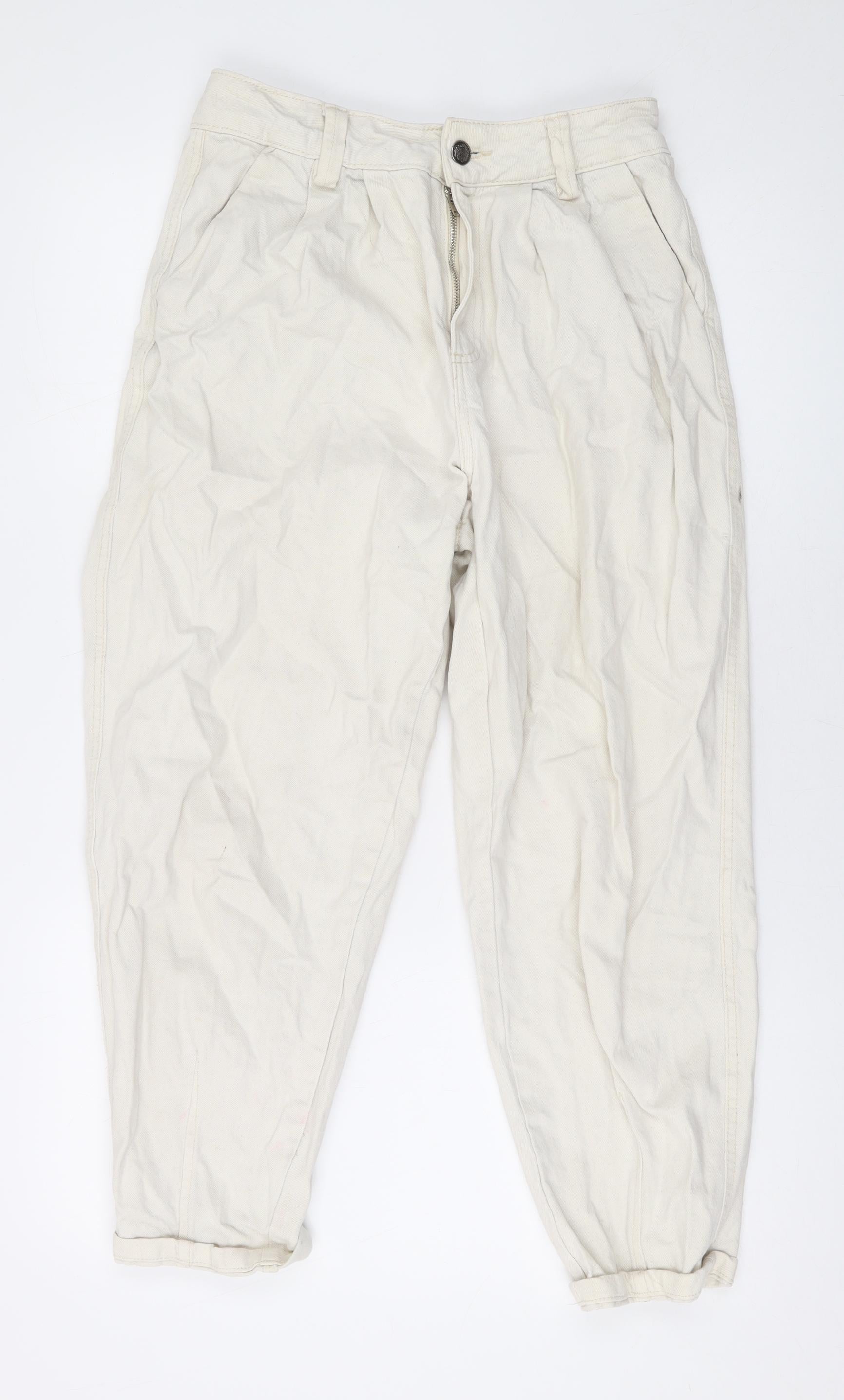 Bershka Womens Beige Cotton Mom Jeans Size 8 L23 in Regular Zip