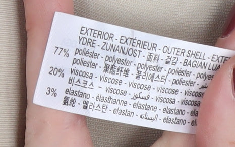 - Material Breakdown: 77% Polyester 20% Viscose 3% Elastane