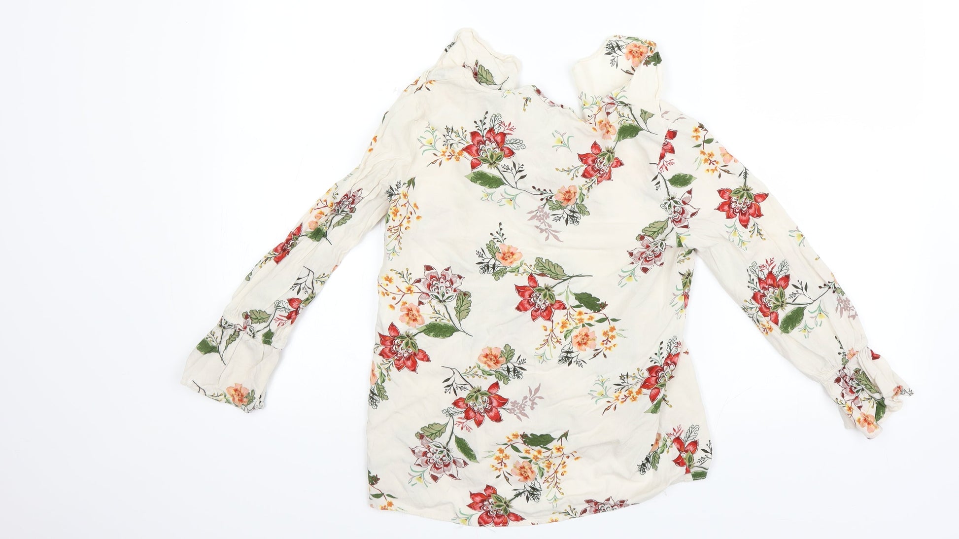 Bershka Womens Beige Floral Basic Blouse Size 6