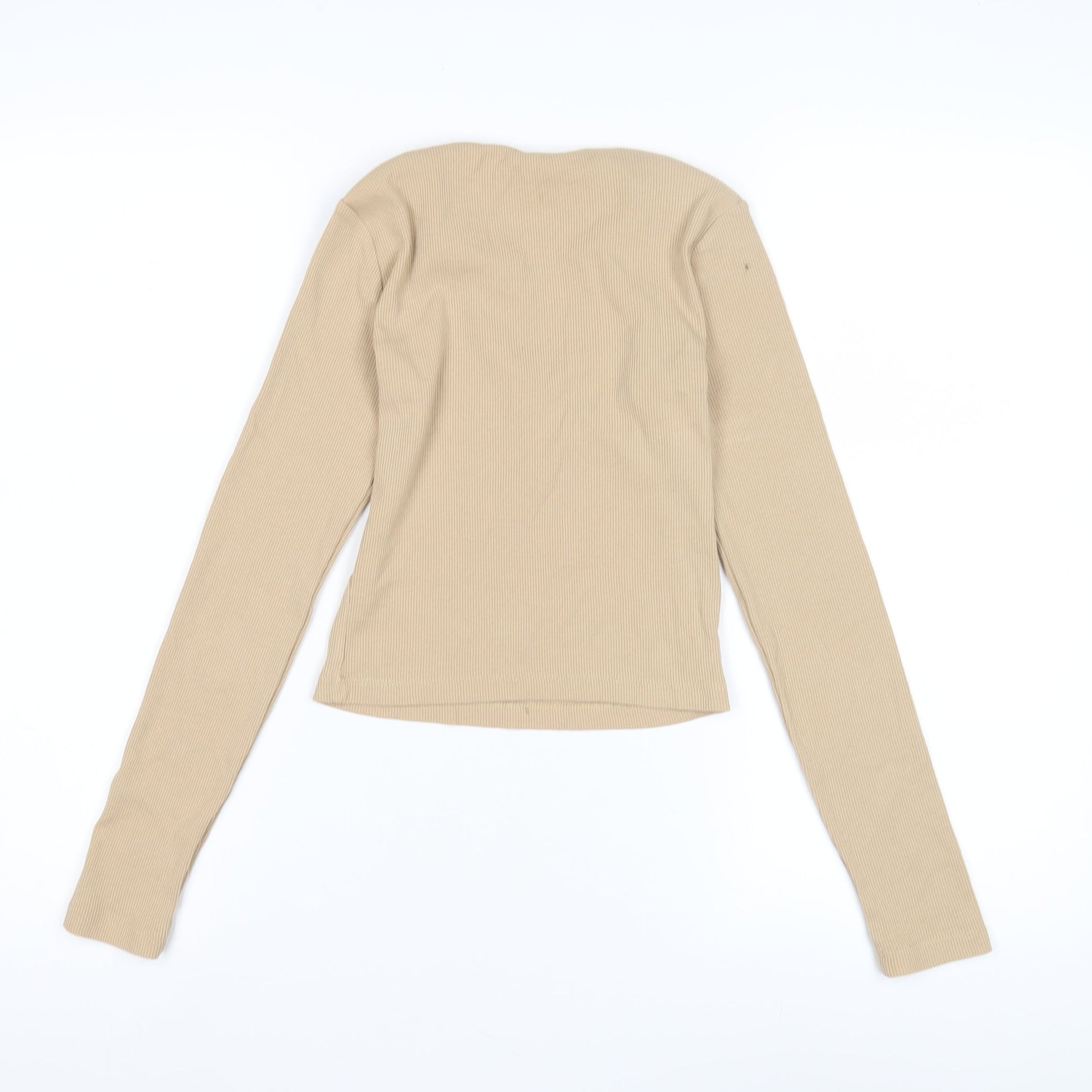 Bershka Women's Beige Long Sleeve Basic T-Shirt Size 10